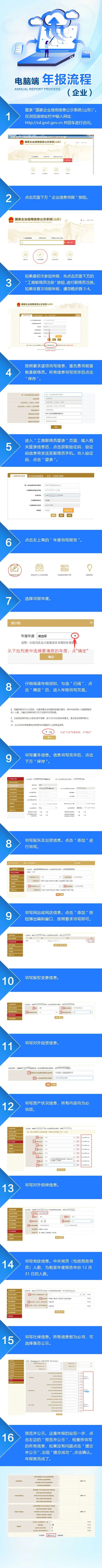 企业年度报告:1.企业通信地址、邮政编码、联系电话、电子邮箱等信息;2.企业开业、歇业、清算等存续状态信息;3.企业投资设立企业、购买股权信息;4.企业为有限责任公司或者股份有限公司的,其股东或者发起人认缴和实缴的出资额、出资时间、出资方式等信息;5.有限责任公司股东股权转让等股权变更信息;6.企业网站以及从事网络经营的网店的名称、网址等信息;7.企业从业人数、资产总额、负债总额、对外提供保证担保、所有者权益合计、营业总收入、主营业务收入、利润总额、净利润、纳税总额信息。