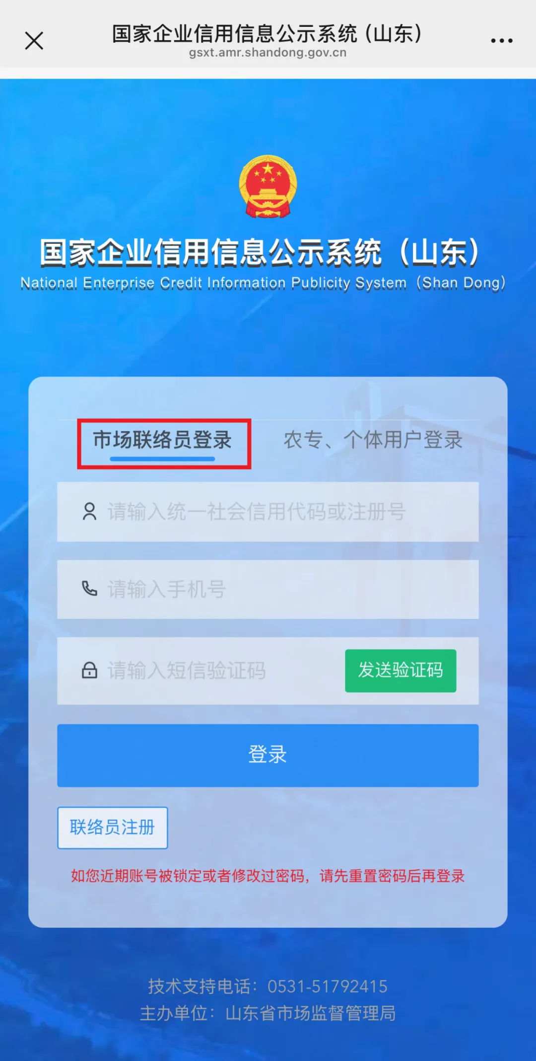 登录国家企业信用信息公示系统(山东)(网址:https://gsxt.amr.shandong.gov.cn/edit/index),点击“企业信息填报”选择“市场监管联络员登录”方式进入年报页面,根据提示进行填报。