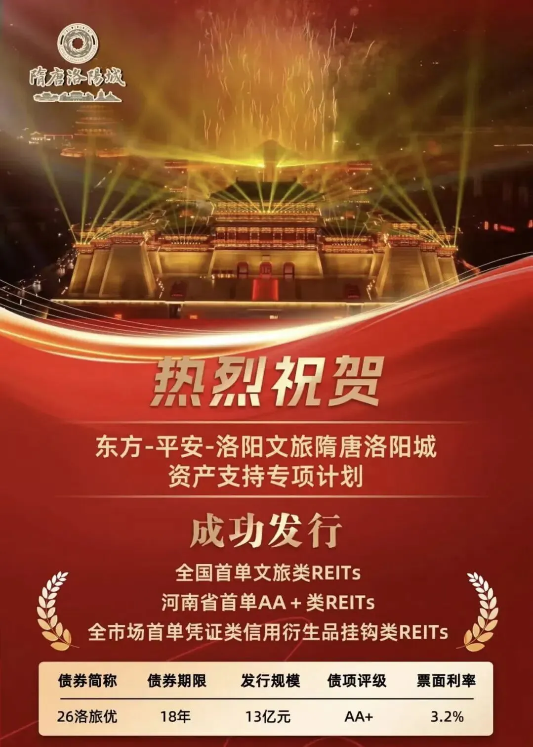 该资产包被纳入专项计划后,进一步转化为证券产品,该证券规模达13亿元,期限18年,票面利率3.2%,信用评级为2A+,并于2026年4月在上海证券交易所成功发行,标志着洛阳通过金融创新手段,成功实现了历史文化遗址的价值激活,走出了一条文化保护与产业发展相辅相成的新路径。
