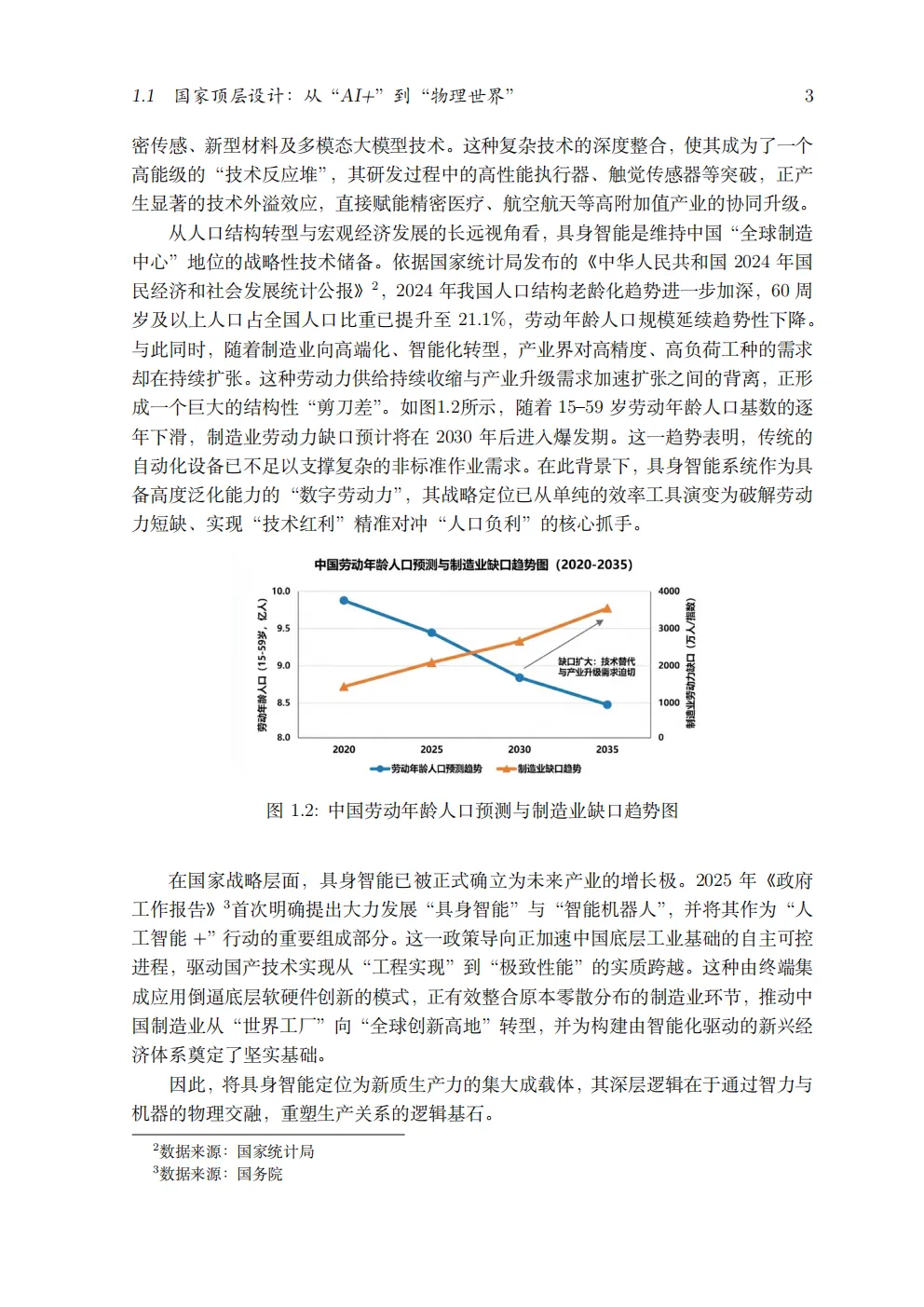 具身智能是新质生产力核心载体,是 AI 从云端走向物理世界的关键跃迁,国家已将其纳入 “人工智能 +” 专项行动,目标 2025 年建创新体系、2027 年达世界先进水平,2030 年市场规模有望达4000 亿元。