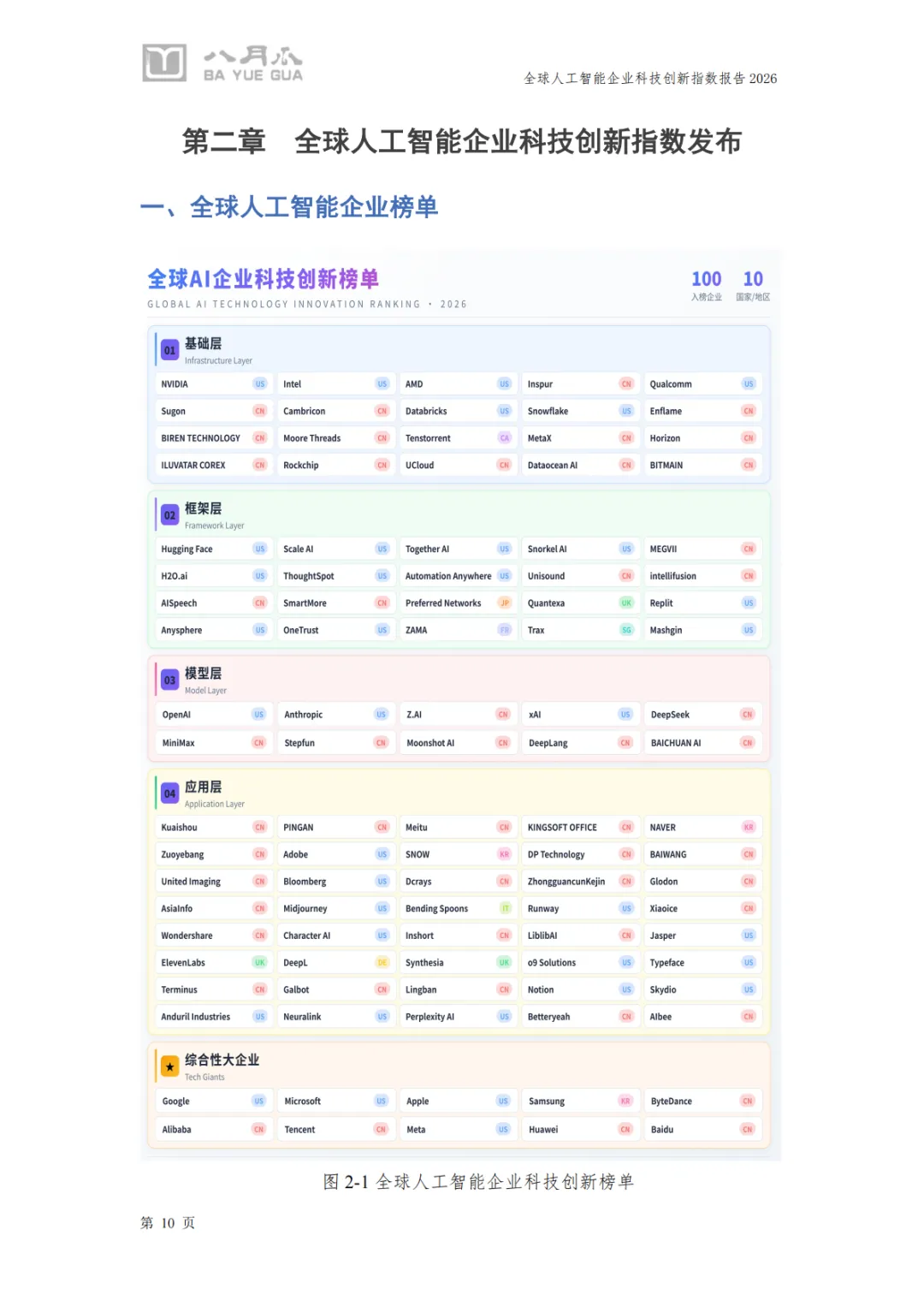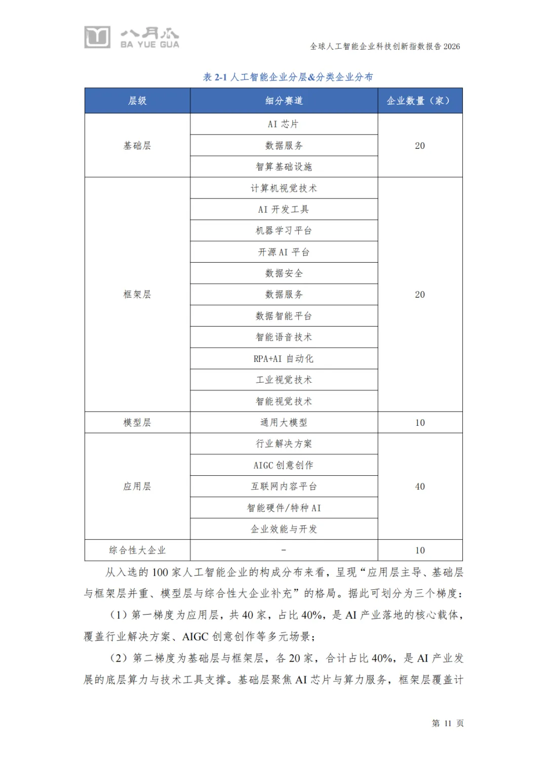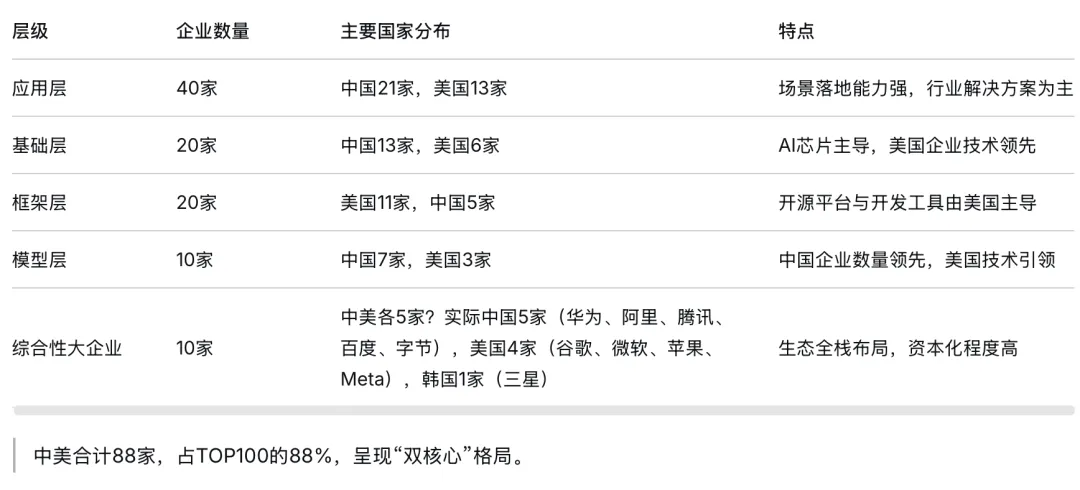 研究对象:全球100家AI核心企业(涵盖基础层、框架层、模型层、应用层及综合性大企业)