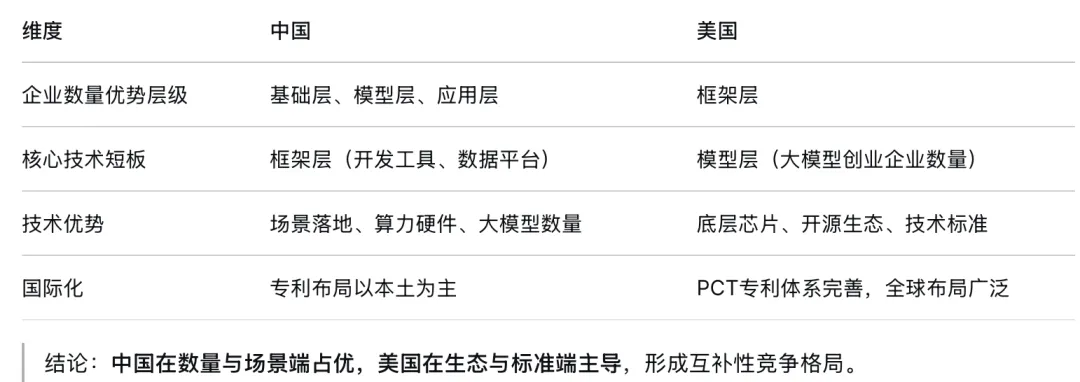 清晰揭示中美在AI产业链上的差异化优势。