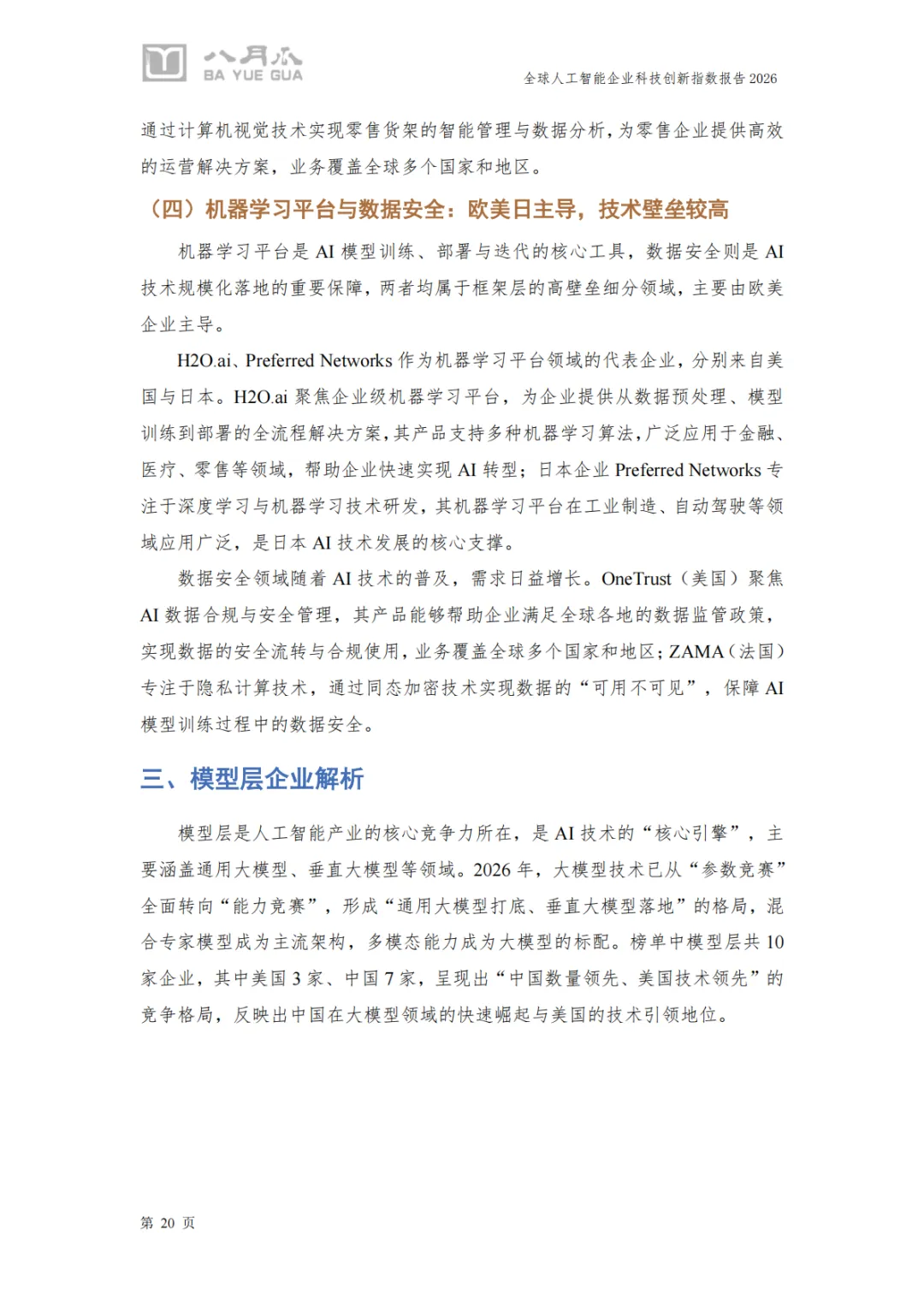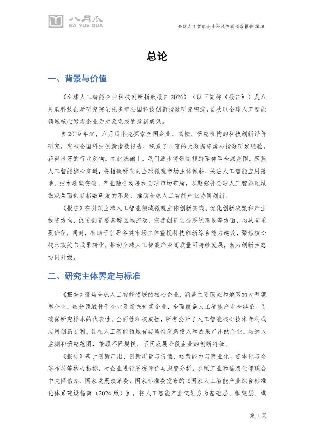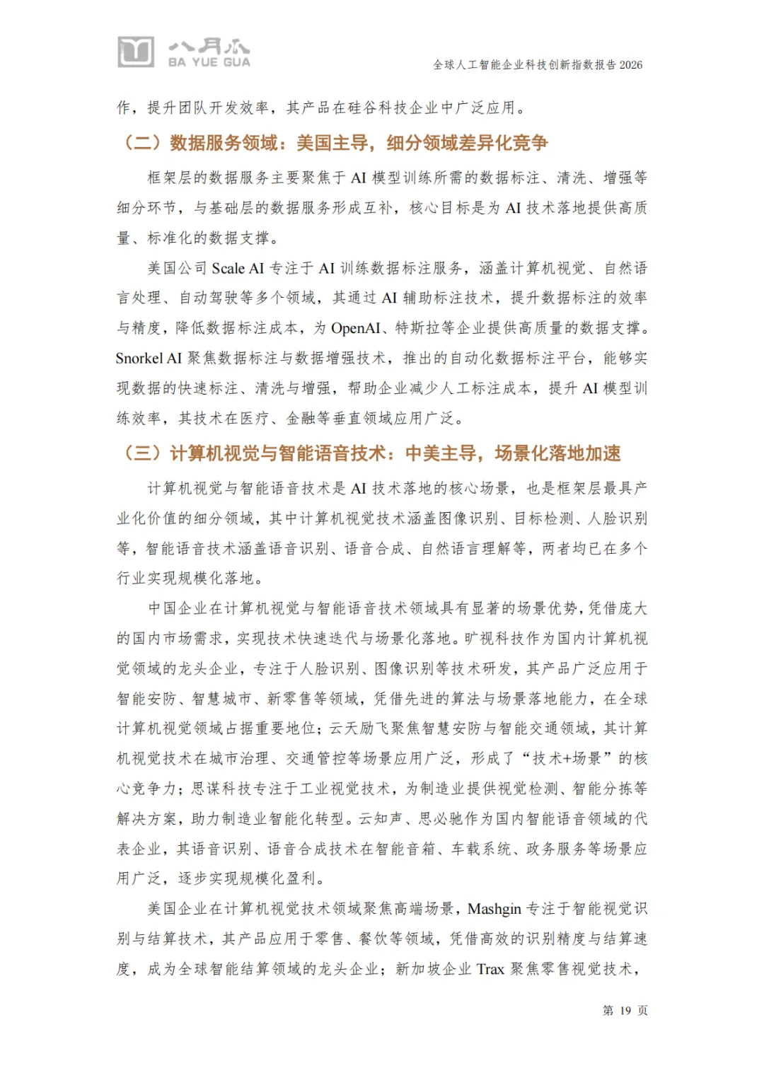 《2026年全球人工智能企业科技创新指数报告》由八月瓜科技创新研究院发布,系统性呈现了全球AI产业的创新格局与企业竞争力。以下是对报告核心内容的总结与分析:
