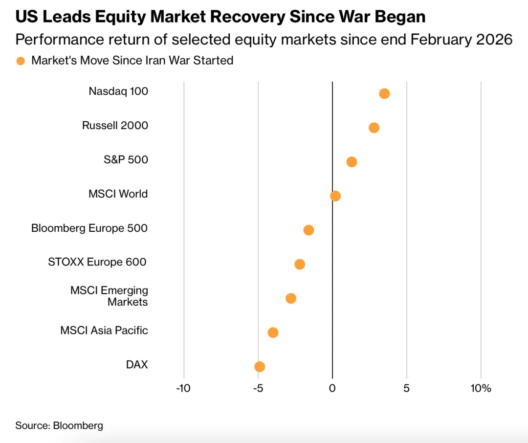 伊朗战火燃起,全球股市一度哀鸿遍野。但在短暂冲击之后,美股指数竟奇迹般站稳脚跟,不仅扛住下行压力,甚至实现小幅上涨。自2月28日以来,纳斯达克100、标普500和罗素2000分别上涨3.5%、1.3%和2.8%,展现出惊人的韧性。