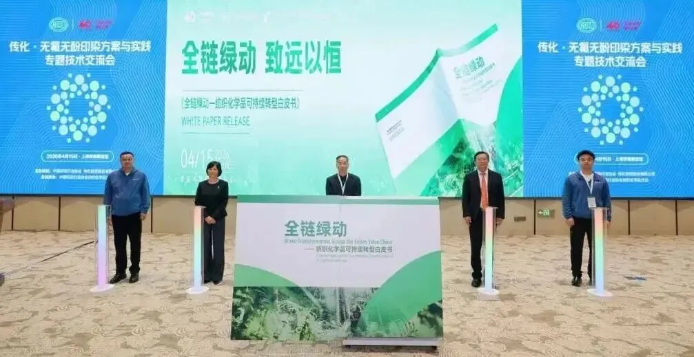 会上发布《全链绿动——纺织化学品可持续转型白皮书》。该白皮书由传化化学、中国纺织信息中心、纺织新材料全国重点实验室、中国印染行业协会纺织化学品分会4家单位联合编制发布,系统梳理行业绿色可持续转型优秀实践案例,为全行业提供可参考、可落地的转型指引。