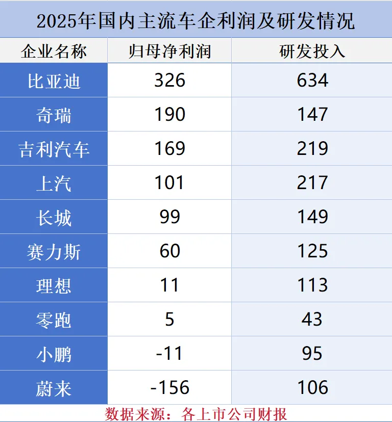 而在利润与研发投入上,比亚迪同样用实力碾压。326亿元归母净利润稳居第一,634亿元研发投入同比大幅增长,甚至超过吉利、长城、奇瑞三家总和,持续为技术创新与产品升级蓄力,硬核底气十足。