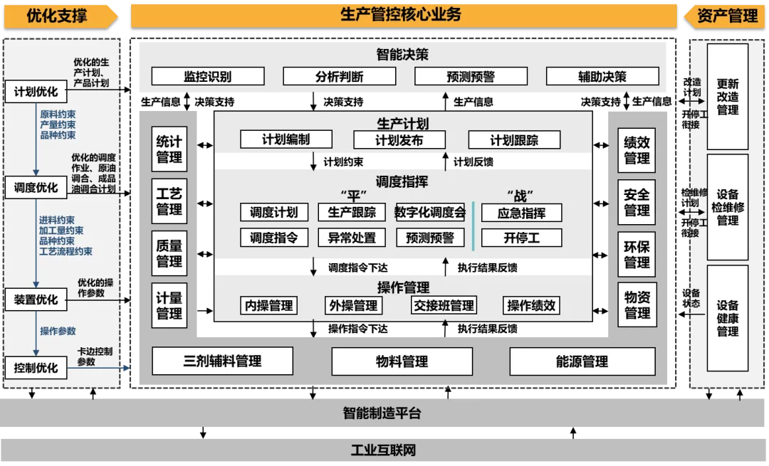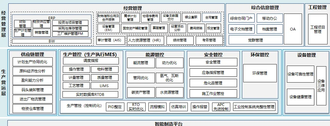 MES功能也从最初的物料管理、能源管理扩展到调度管理、工艺管理、操作管理、质量管理、三剂管理、计量管理等多功能模块。