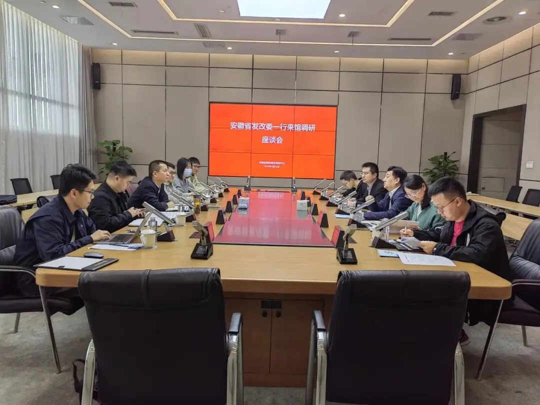 省发改委一行重点介绍全省“政产学研金服用”高效办成一件事平台建设情况。陈林重点介绍了安徽科技大市场政产学研金服用一体化信息服务平台、全省统一科技大市场服务体系建设情况以及存在的问题、下一步创新举措。双方就整合优质资源、加强合作等问题进行了深入探讨交流。
