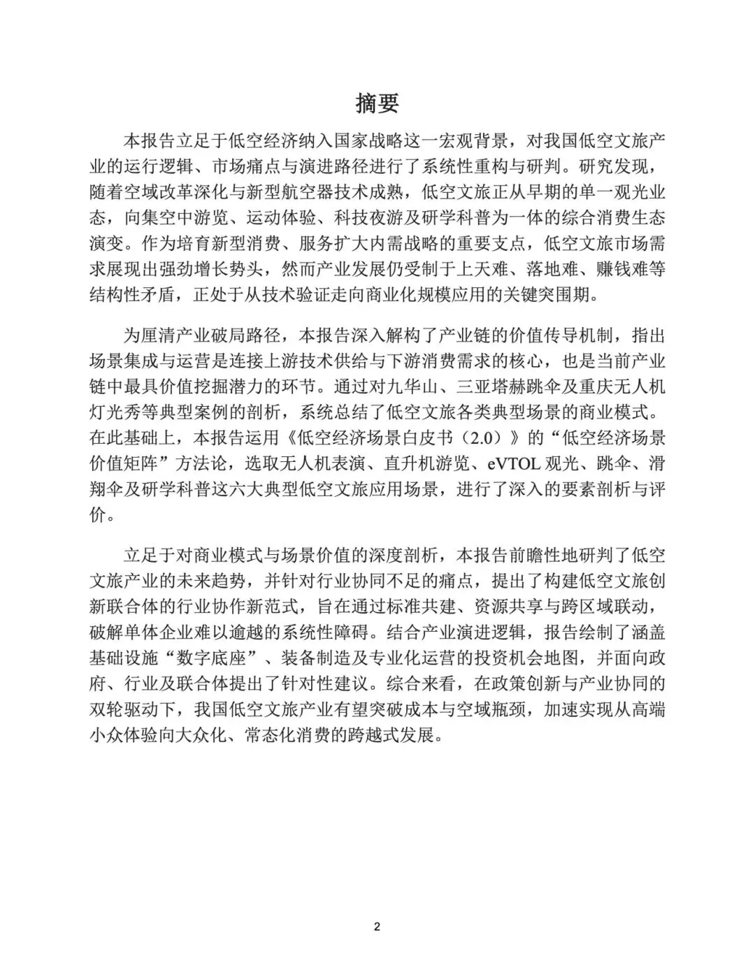 产业链分为上游装备(无人机 /eVTOL/ 直升机)、中游基建(起降点 / 通导监 / 运营)、下游场景(文旅 / 夜游 / 研学)与核心枢纽场景集成。核心瓶颈:空域审批复杂、起降点不足、安全监管滞后、成本高难以盈利、公众认知不足、跨界人才短缺,中游基建与合规是破局关键。 - 商业模式与案例:观光走分层,表演靠常态化,研学做长期