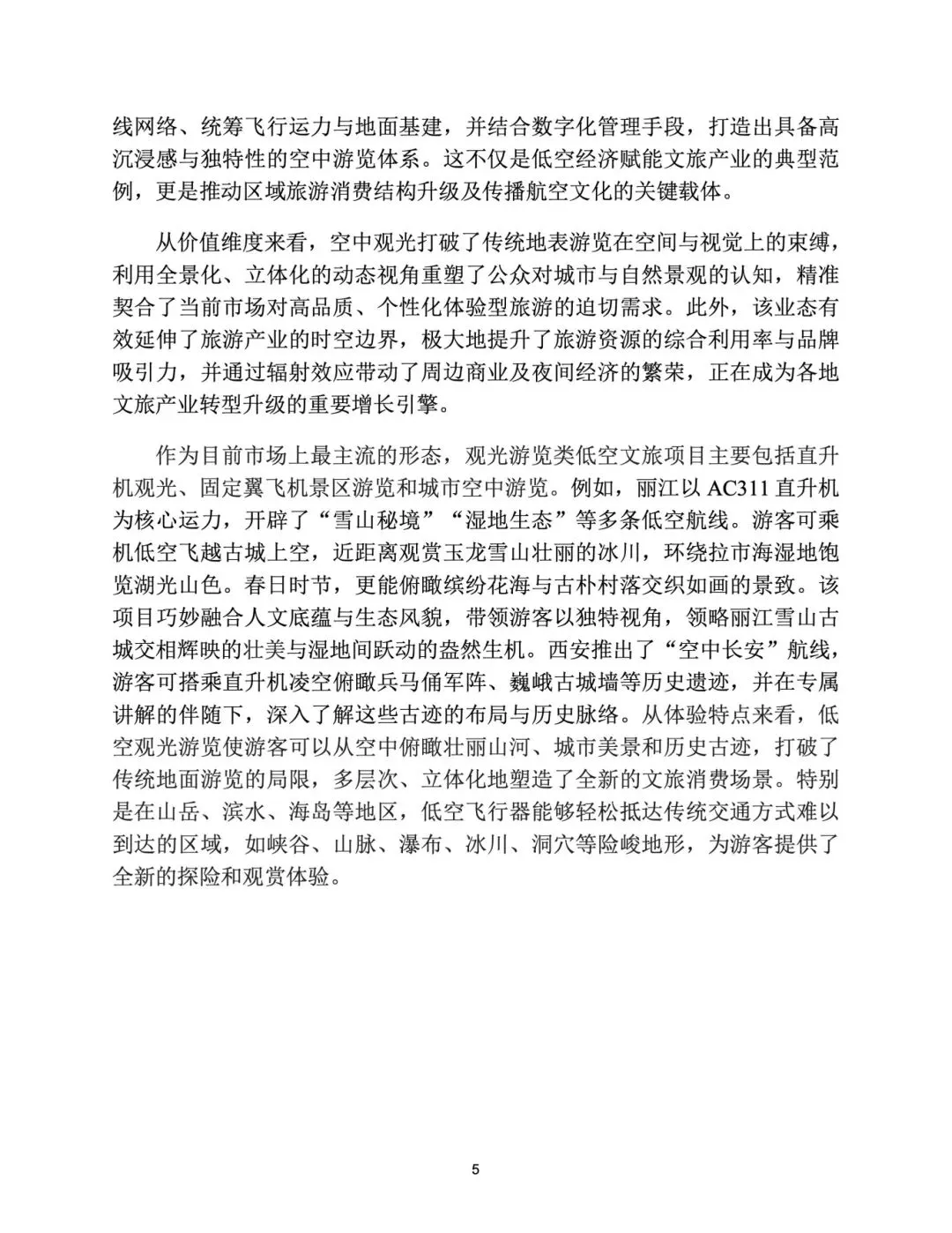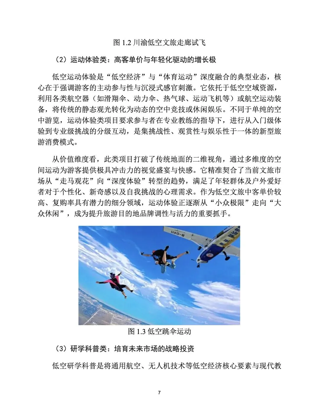 空中观光采用分层定价、淡旺季调节、套餐联动提升复购;无人机表演从节庆走向常态化,靠政府购买、品牌赞助、门票、数字藏品变现;运动体验以高客单 + 会员体系 + 增值摄影盈利;研学科普以 B 端政府采购、赛事、培训构建长期现金流。重庆、三亚、丽江、九华山等形成可复制标杆。 - 未来趋势:电动化、网络化、普惠化、跨界融合