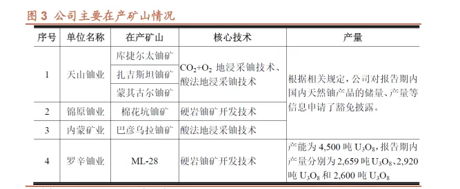 1、掌握境内外丰富天然铀资源,在运规模领先