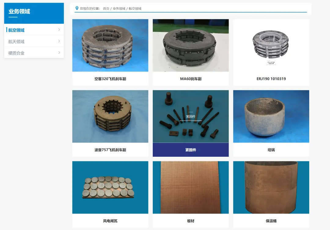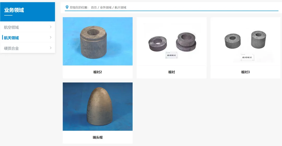 公司是国内固体火箭发动机用碳/碳复合材料的重要研制、生产基地 为多家航天企业提供碳/碳喉衬产品配套 碳/碳喉衬材料已成功应用于"快舟系列"商业航天固体运载火箭