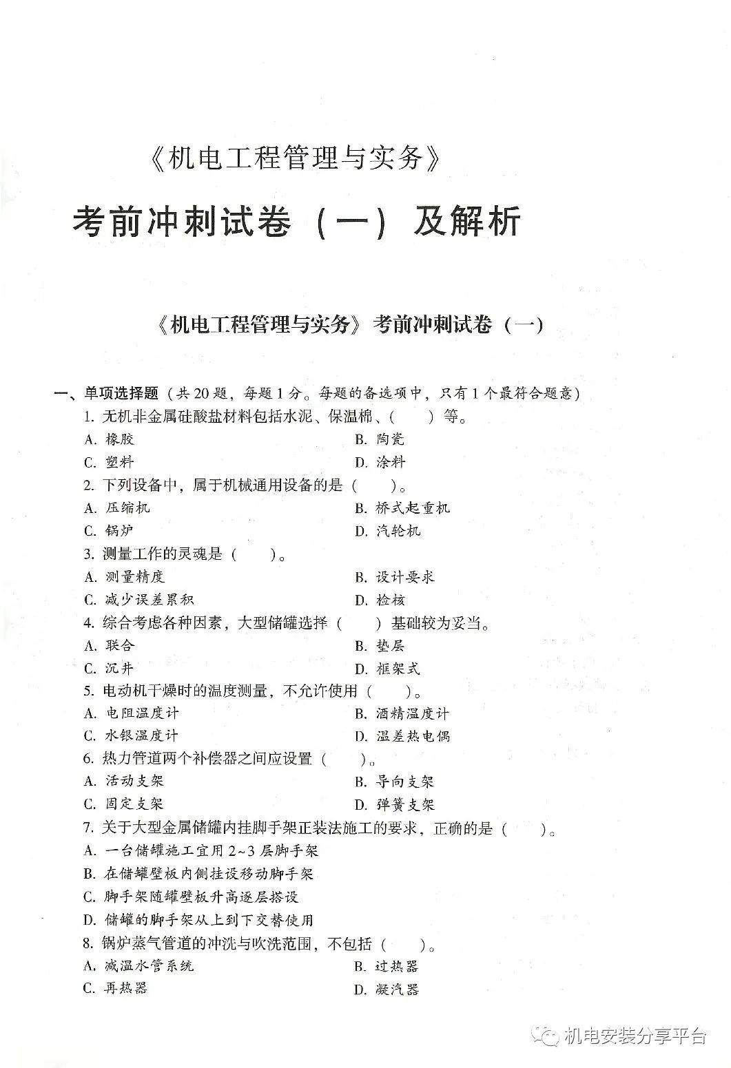 2023年一建机电冲刺上岸试卷(必做)