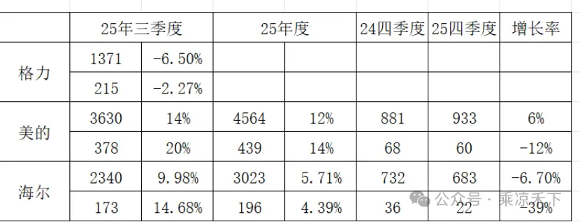 下面是美的、海尔以及小米财报中的数据,美的、海尔前三季度营收、净利润都实现了双位数增长,而格力是双下滑。