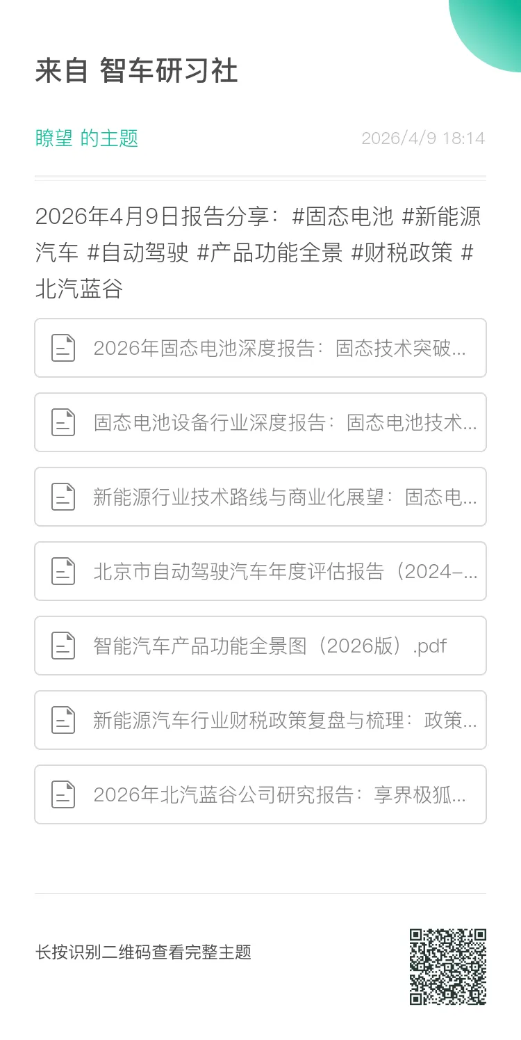 欢迎加入《智车研习社》知识星球,共享1000+海量报告资源?