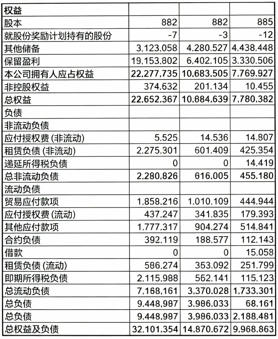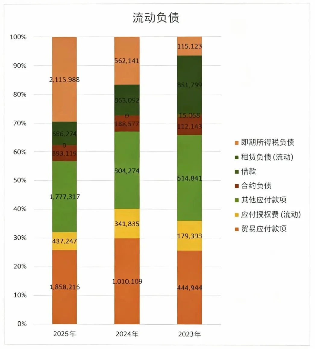 • 应付授权费(非流动): 购买IP授权产生的长期应付款项。