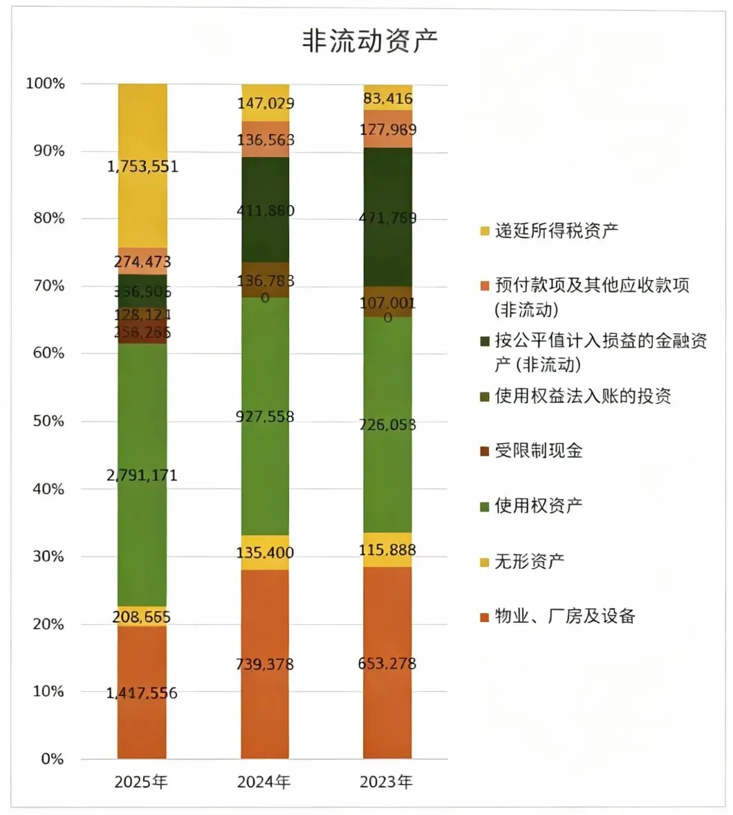 • 预付款项及其他应收款项(非流动): 预付给供应商或第三方,预计一年后才能收回的款项。