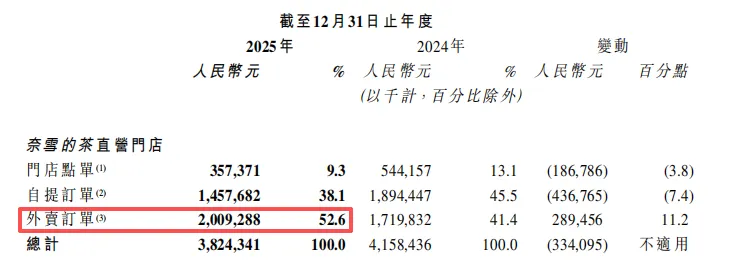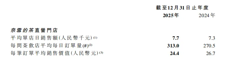 2025 年末门店总数1646 家,较上年净减152 家,为上市后首次负增长;其中直营1288 家、加盟358 家,集中关闭低效、亏损门店。 直营同店销售额增长6.3%,单店日销7700 元,同比提升5.2%;日订单量313 单,增长15.7%,门店运营质量明显回升。