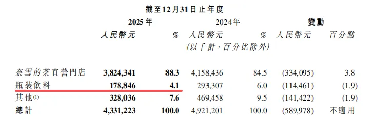 2025 年奈雪实现营收43.31 亿元,同比下降 12%,为上市以来首次年度下滑,主因关店优化与瓶装业务收缩;但全年净亏损2.39 亿元,较 2024 年 9.26 亿元大幅收窄73.9%,经调整亏损率显著改善。