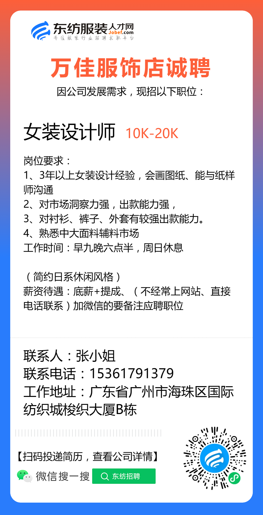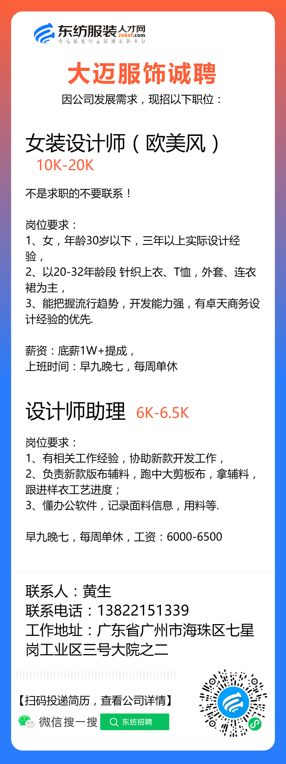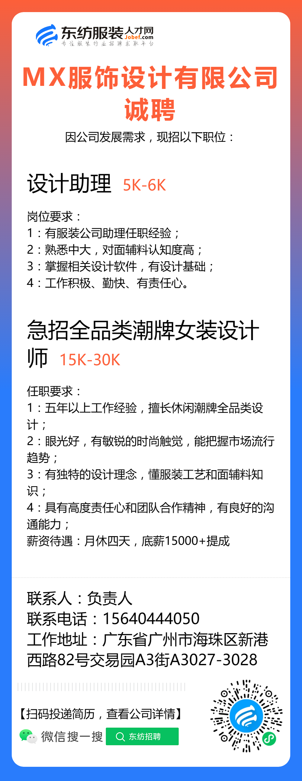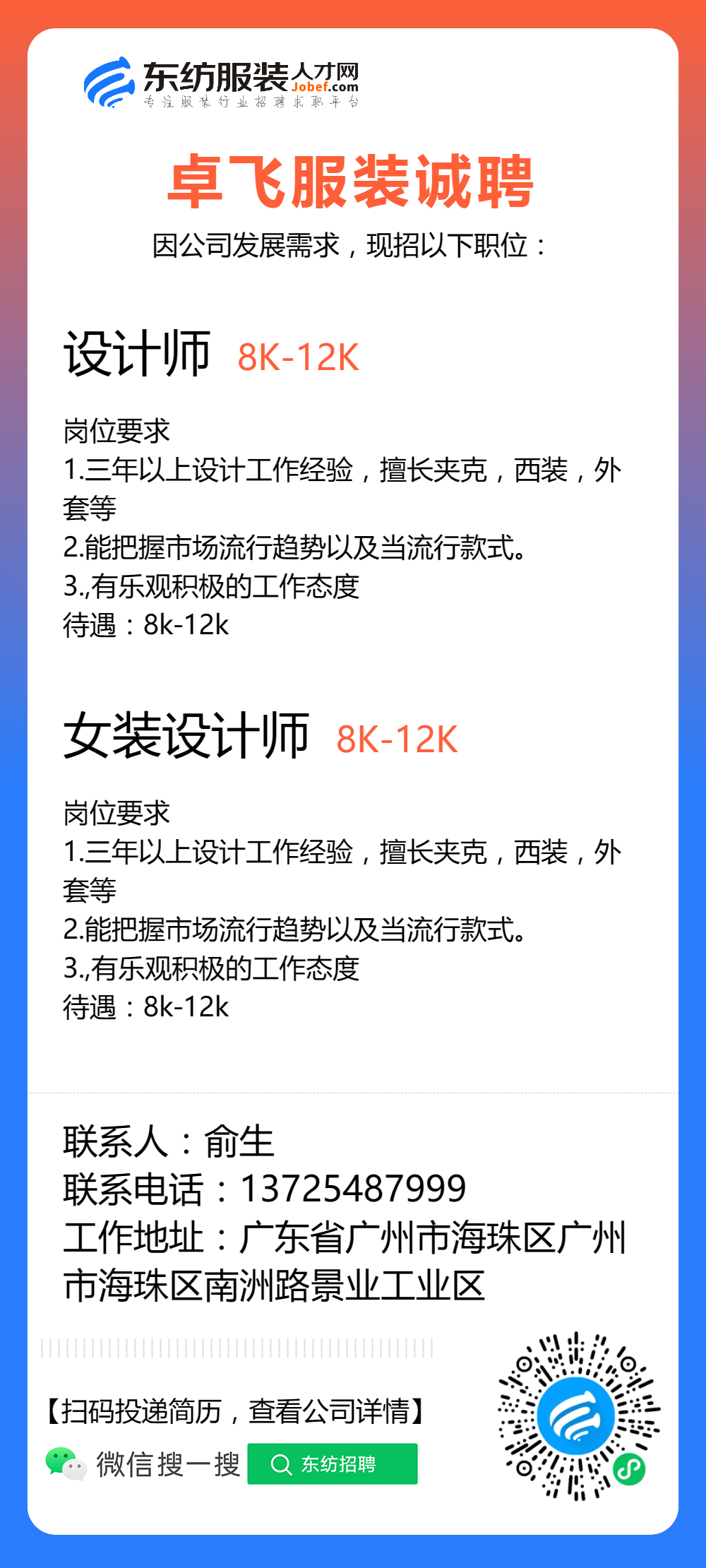 服装招聘·设计类丨8. 24 号,女装设计师、男装设计师、童装设计师、设计助理.....