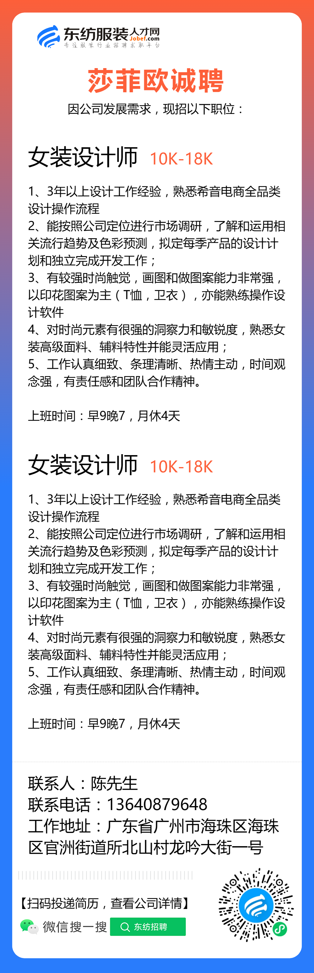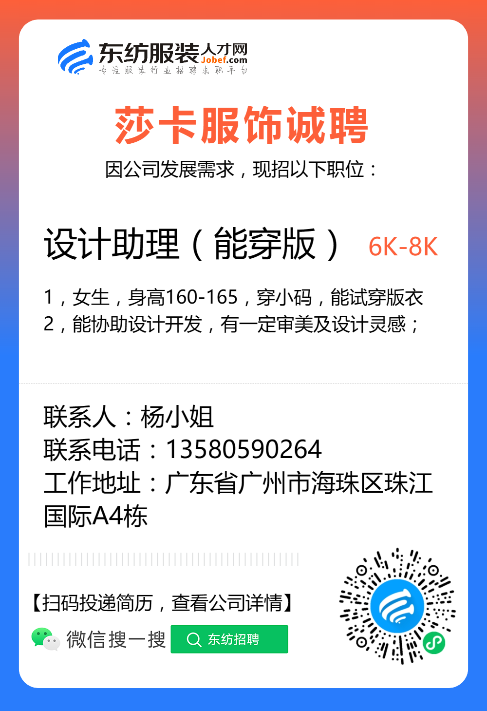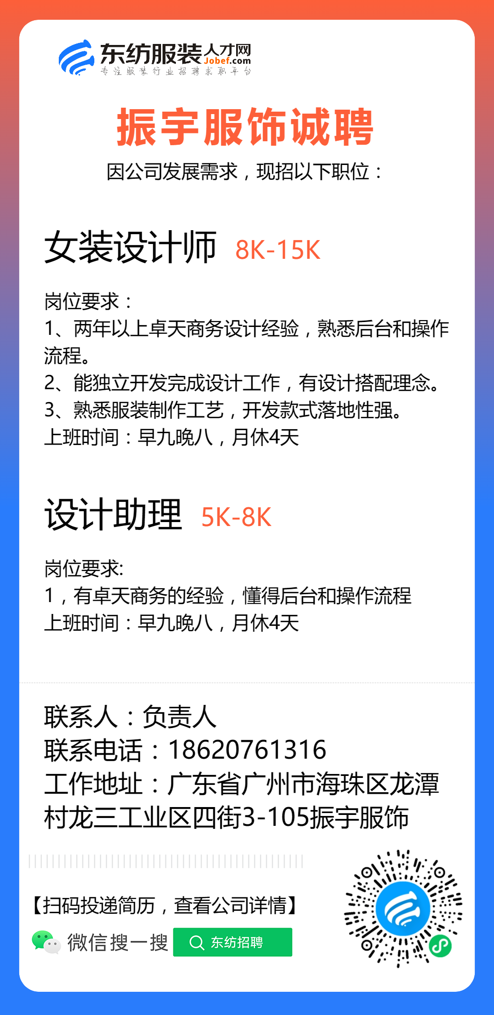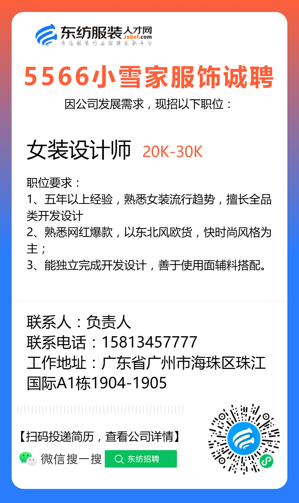 服装招聘·设计类丨8. 24 号,女装设计师、男装设计师、童装设计师、设计助理.....