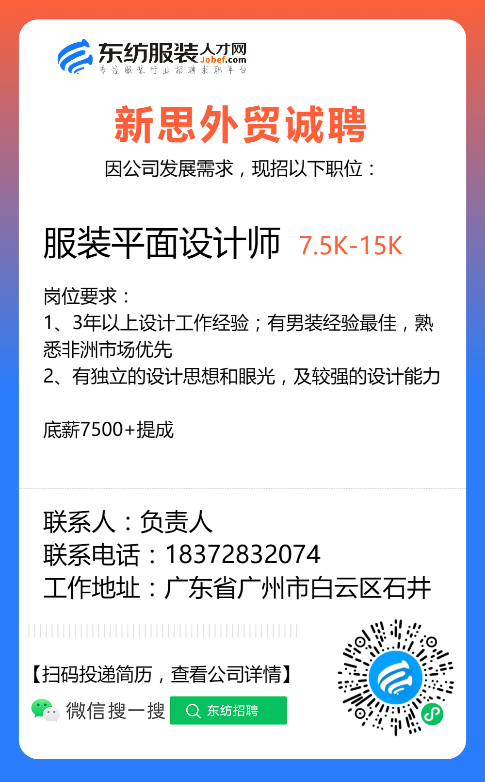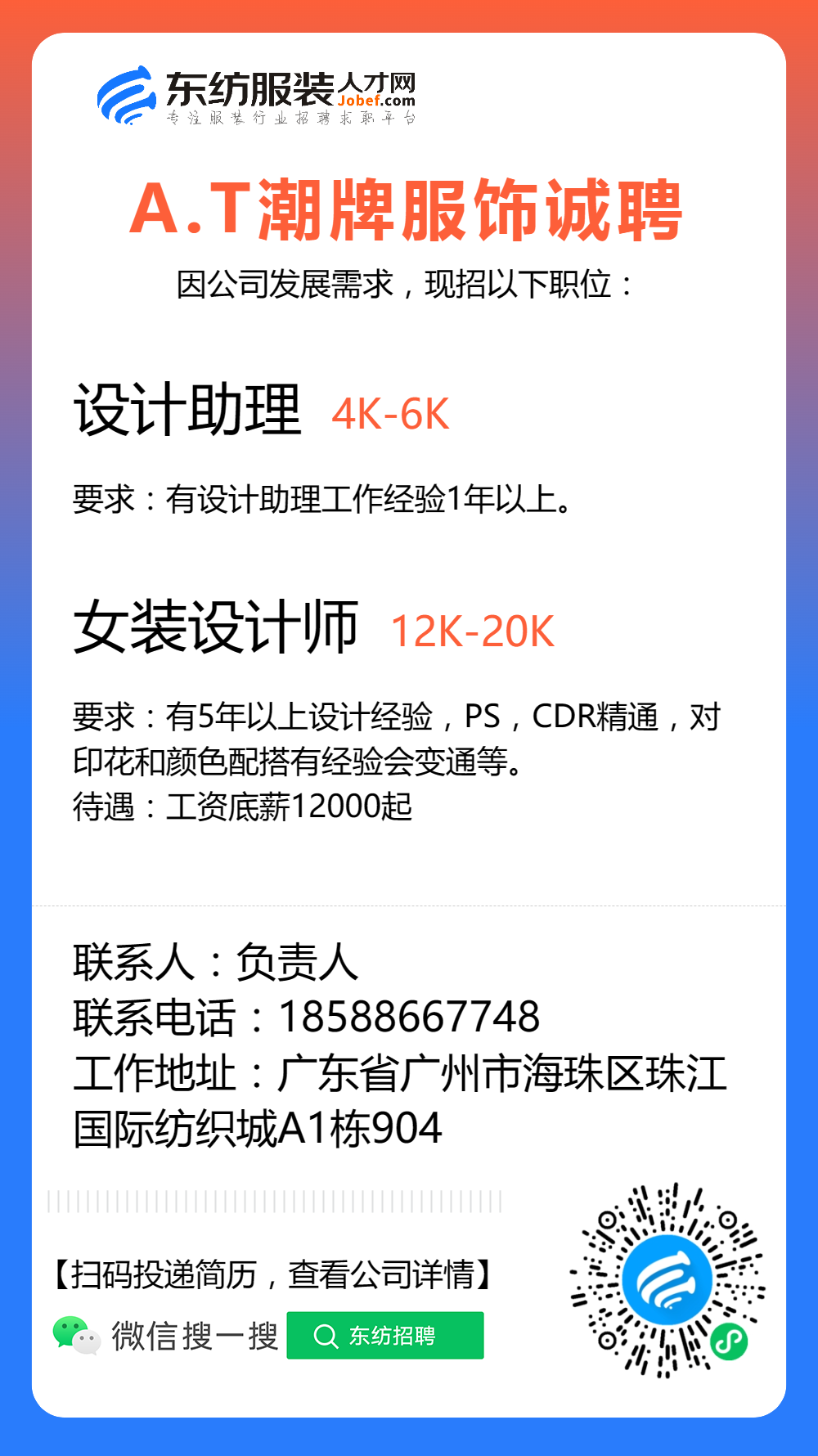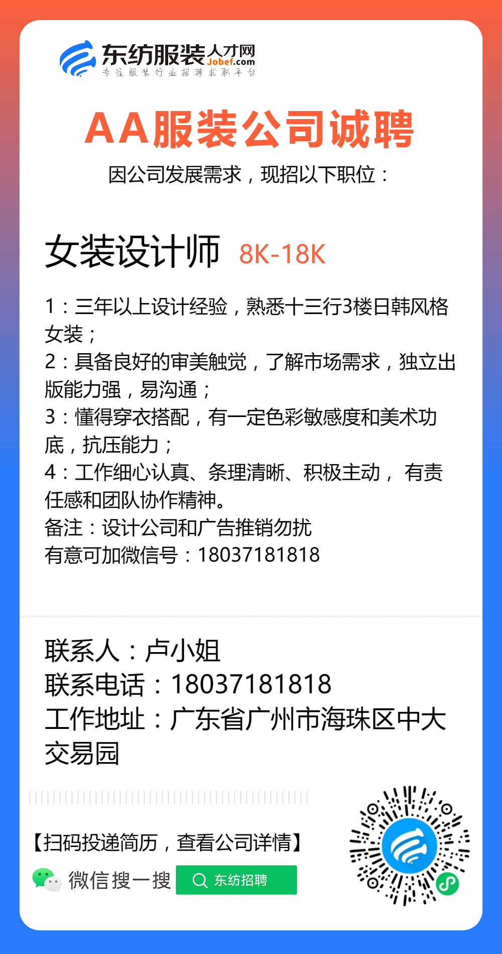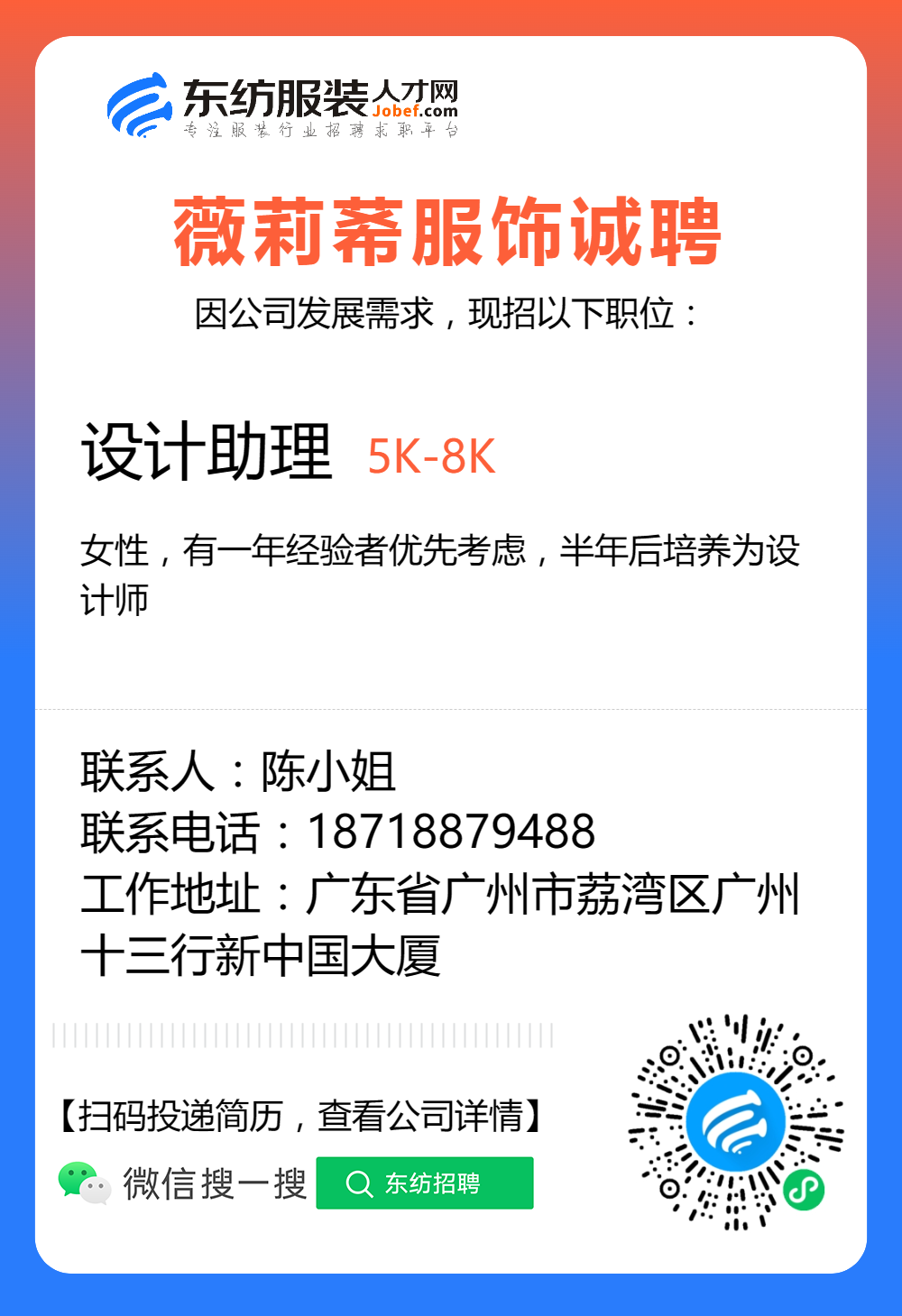 服装招聘·设计类丨8. 24 号,女装设计师、男装设计师、童装设计师、设计助理.....