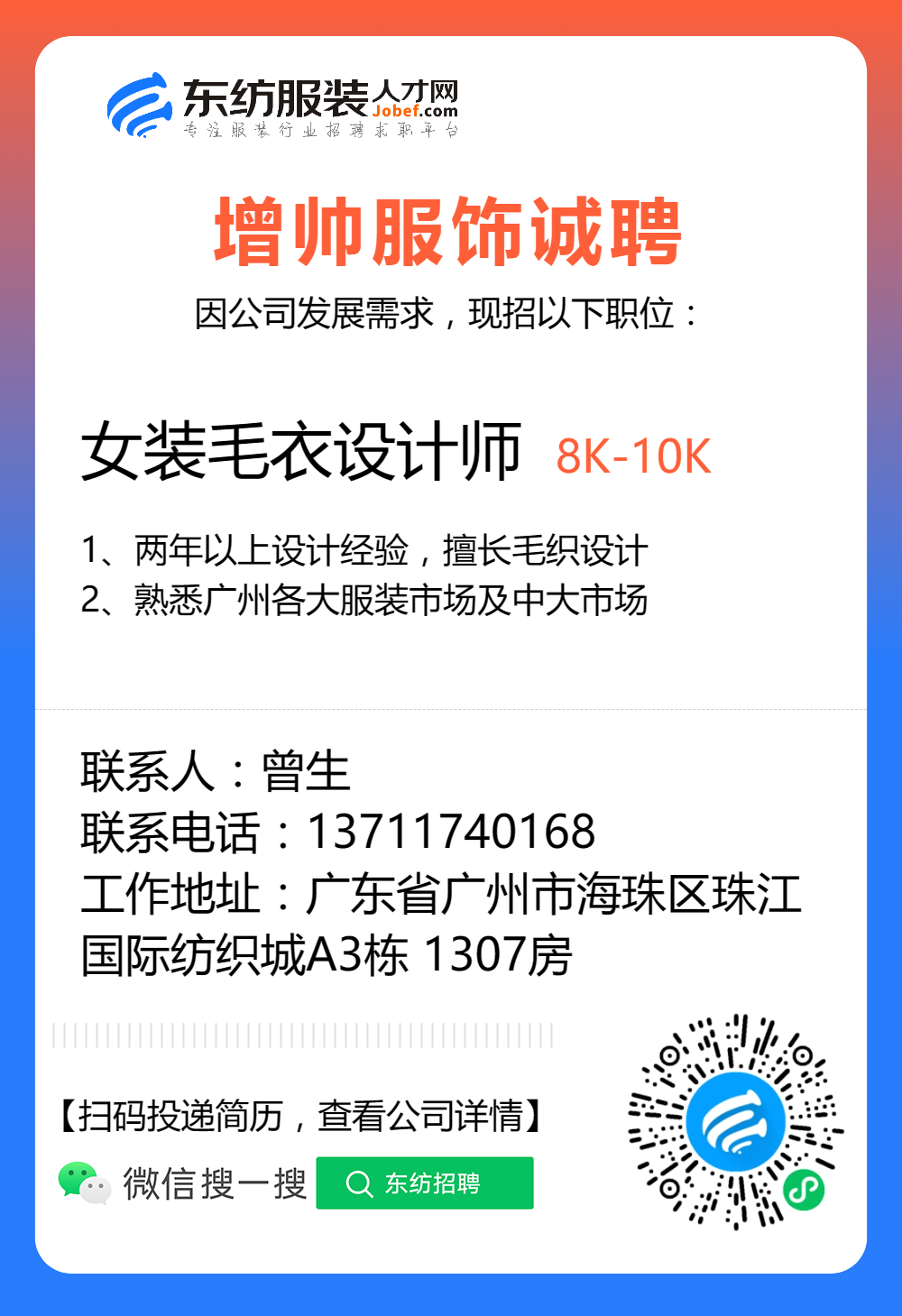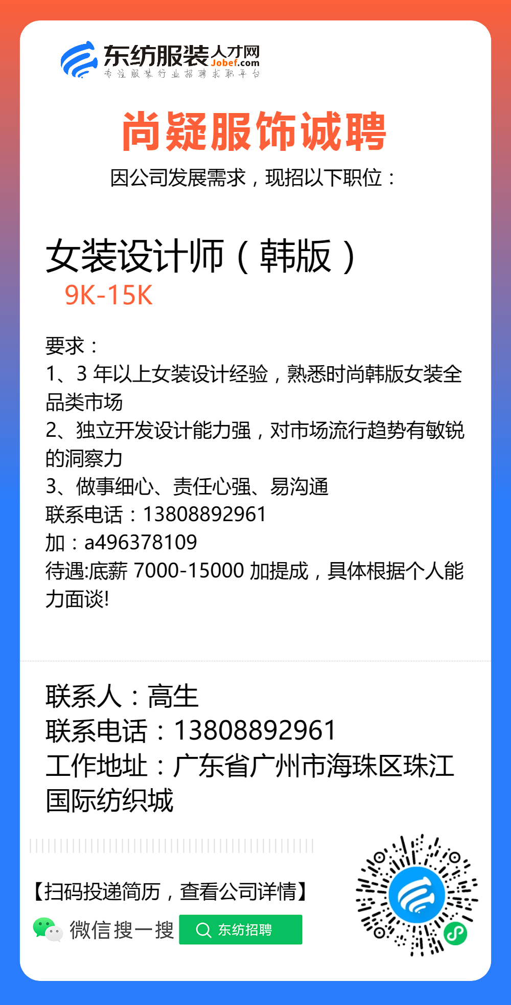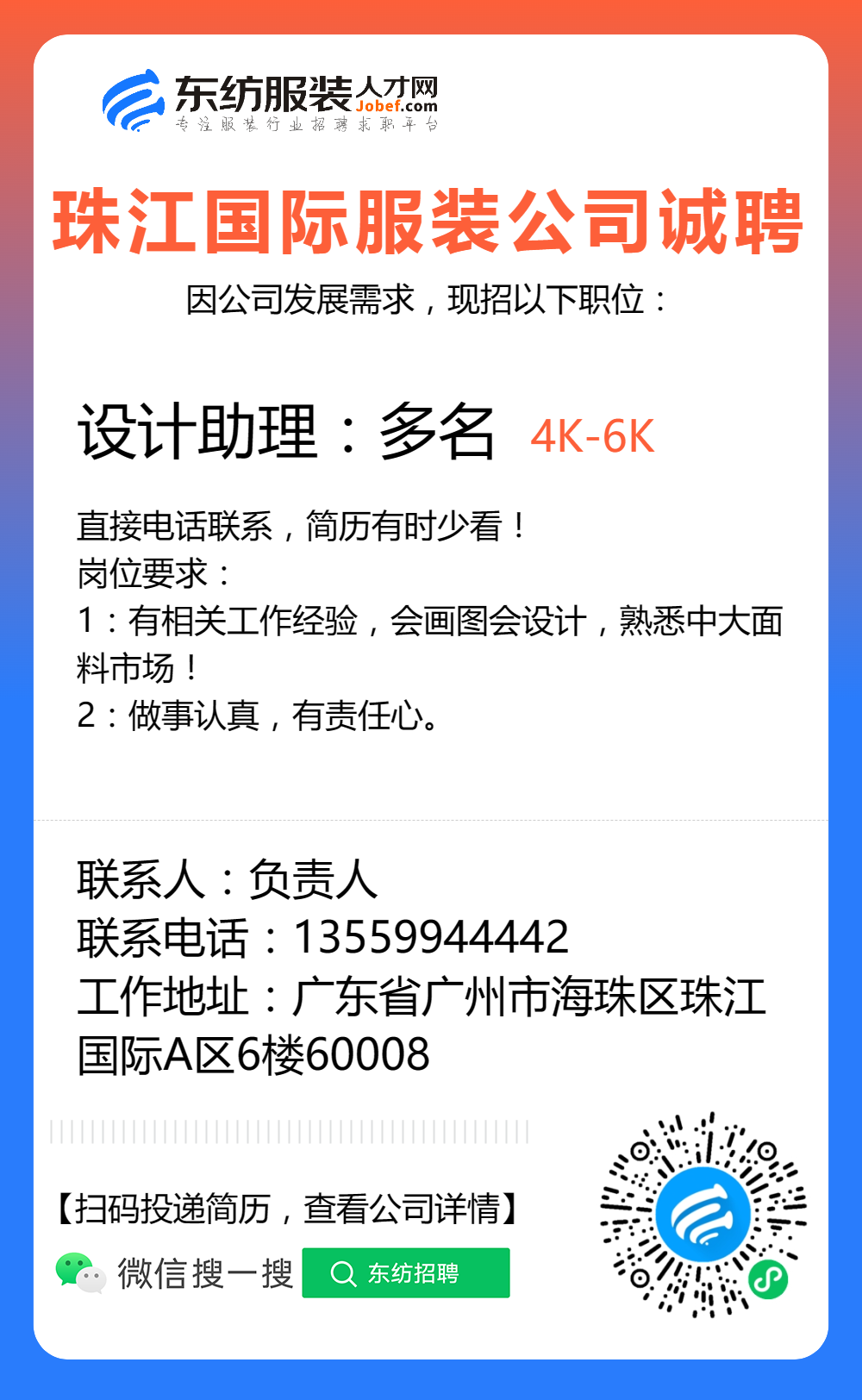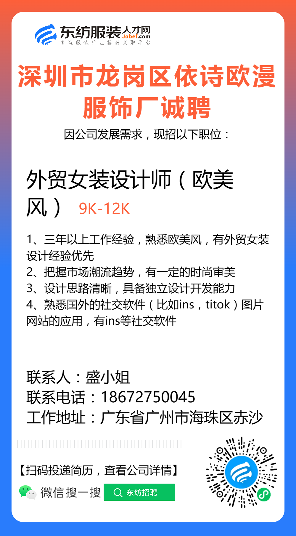 服装招聘·设计类丨8. 24 号,女装设计师、男装设计师、童装设计师、设计助理.....