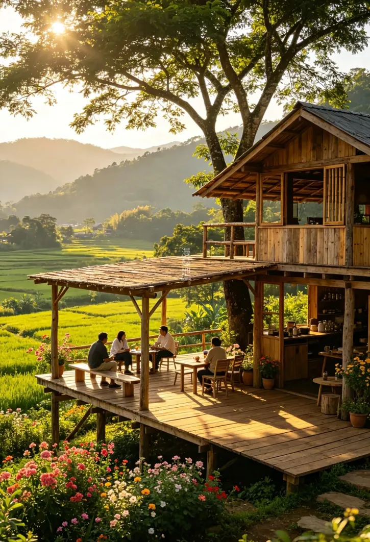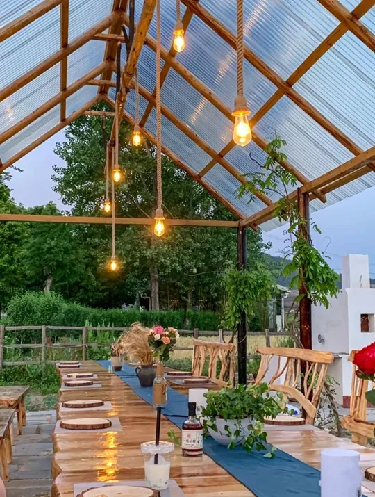 14.素食养生餐吧:以乡村原生态蔬菜、菌菇、豆制品为核心,推出轻量化素食套餐、养生茶饮,打造“健康、简约、自然”的用餐场景,适配年轻、康养客群,可结合乡村生态资源,打造户外用餐区域,提升体验感。