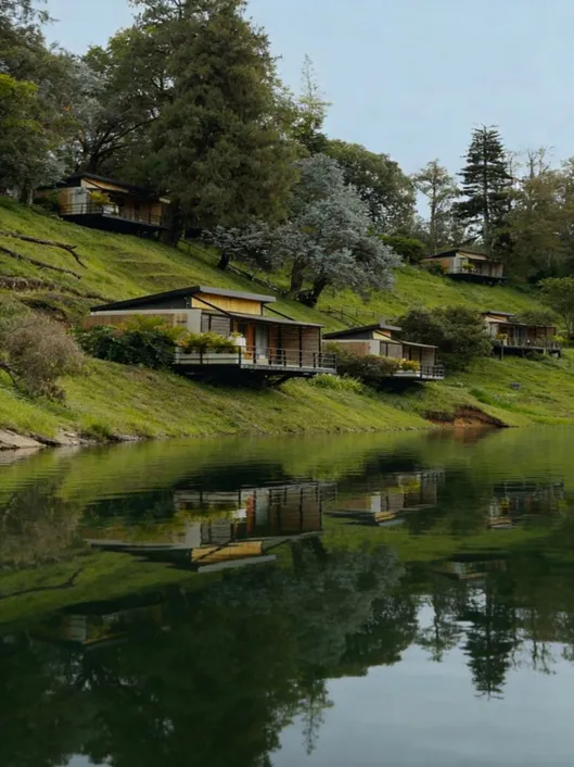 12.滨水民宿:针对有河流、湖泊、水库的乡村,打造滨水民宿,配套垂钓、划船、水上休闲等服务,打造“亲水+住宿”场景,适配夏季客流,落地需做好防水、安全防护措施,保护水资源环境。