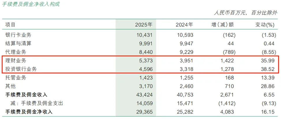 (2)中收成为强劲增长极,是驱动营收的重要引擎:手续费及佣金净收入同比增长16.15%,增速较前三季度提升4.67个百分点,该增速比不少中收见长的头部势力还要高出不少。其中,理财业务手续费收入同比增长35.99%,投行业务手续费收入同比增长38.52%,成为核心驱动。