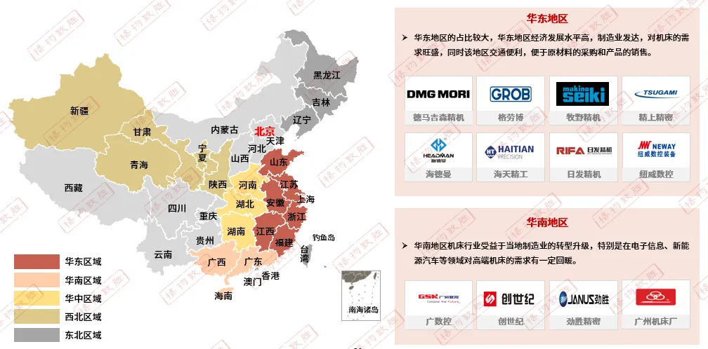 华东地区的占比较大,华东地区经济发展水平高,制造业发达,对机床的需求旺盛,同时该地区交通便利,便于原材料的采购和产品的销售。