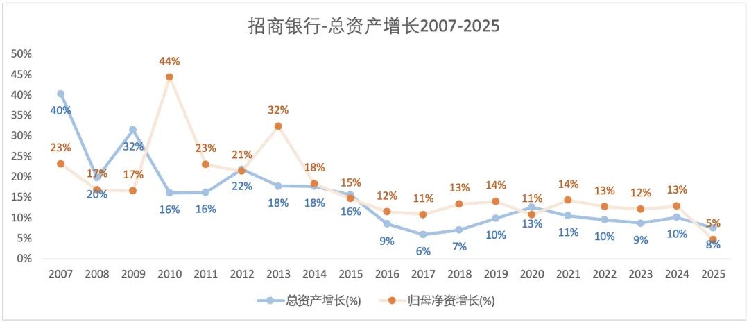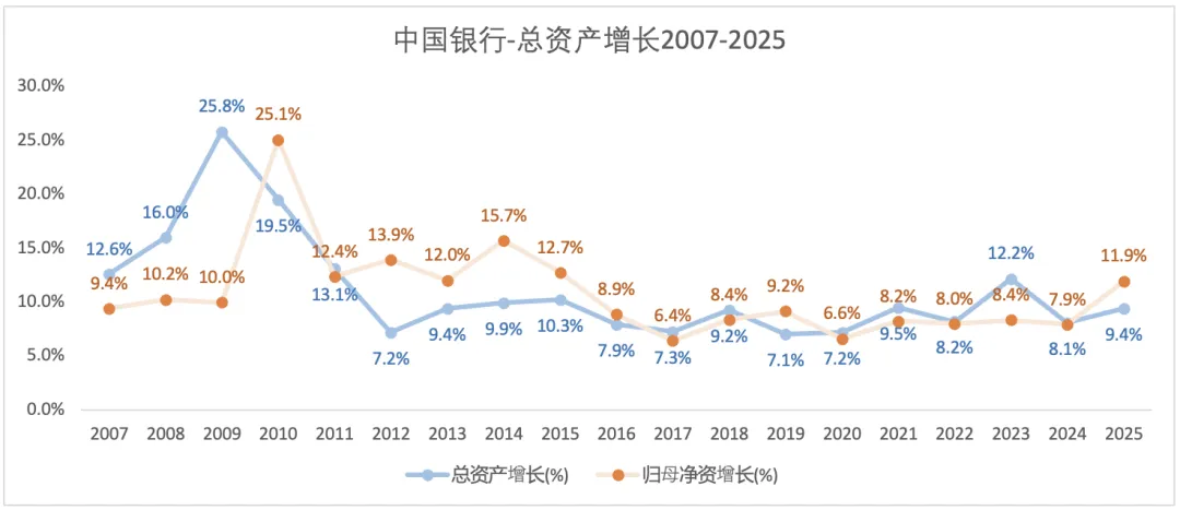 2025年,中行的总资产增速(9.4%)超过招行(8%)。