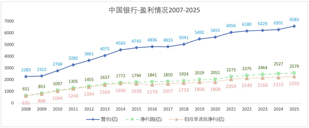 2025年营收6583亿元,同比增长4.5%;归母普通股净利2292亿,同比增长3.5%。