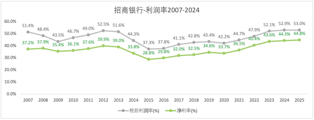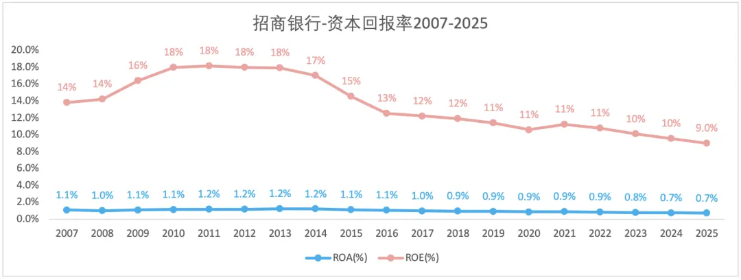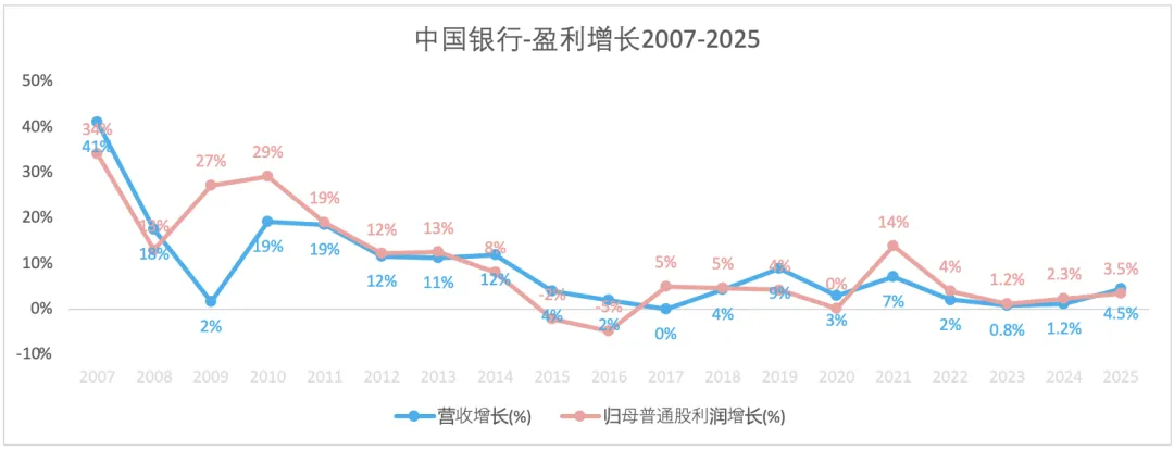 2007-2025,营收和归母普通股净利的复合增长率分别为7%和8.1%。2023-2025年,营收和归母普通股净利增速呈现缓慢上升趋势。招行亦有此趋势。