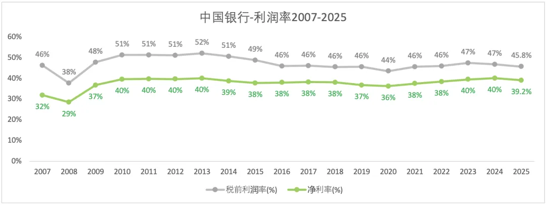 2025年中国银行的净利率下降0.9个百分比,税前利润率下降1个百分比。
