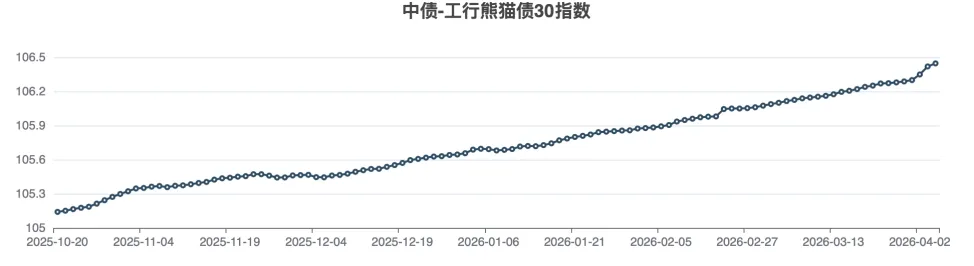 2025年年末,由中央结算公司和中国工商银行联合推出的首个熊猫债市场债券系列指数“中债-工行熊猫债系列指数”发布。指数根据信用资质和发行人代表性维度进行成分券筛选,包含“中债-工行熊猫债 AAA 指数”与“中债-工行熊猫债30指数”,覆盖银行间市场信用水平、流动性和可投资性高的熊猫债品种,指数发布提升熊猫债市场价格发现效率,便利境内外投资者进行资产配置与业绩比较。过去半年,“中债-工行熊猫债AAA指数”和“中债-工行熊猫债30指数”持续攀升。