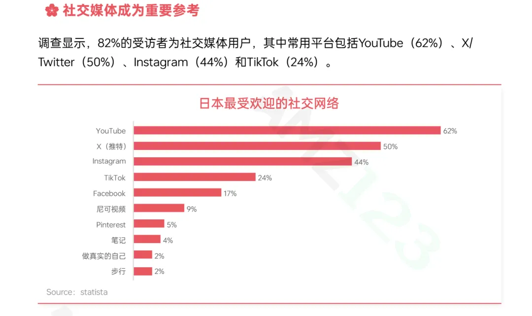 与此同时,社交媒体正成为重要信息入口,YouTube、X、Instagram等平台覆盖广泛,相当比例的消费者通过社交媒体获取商品信息,种草效应逐步显现。