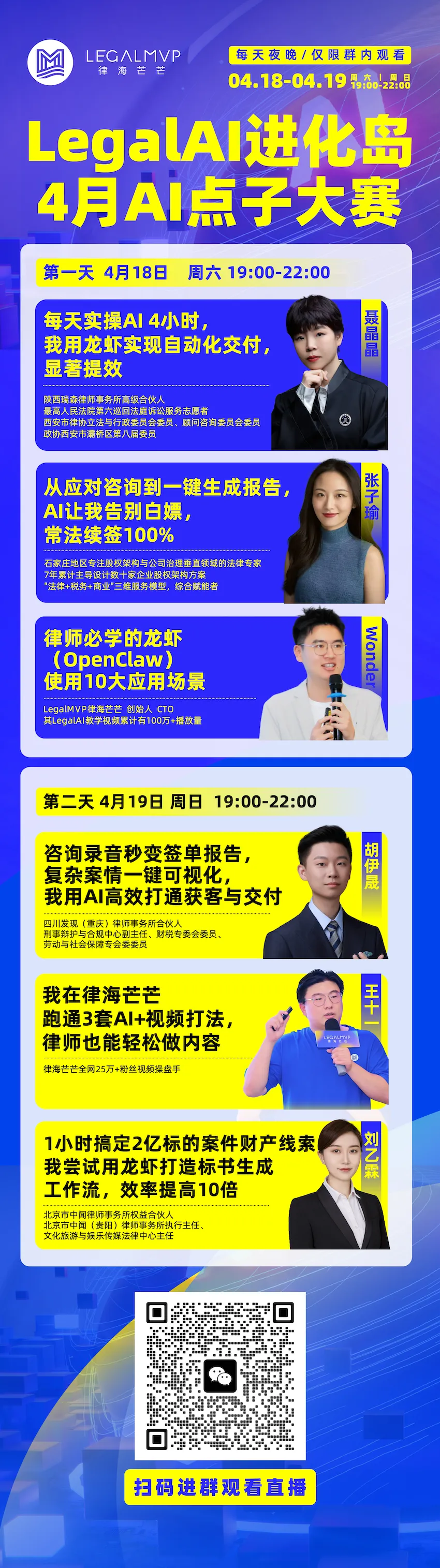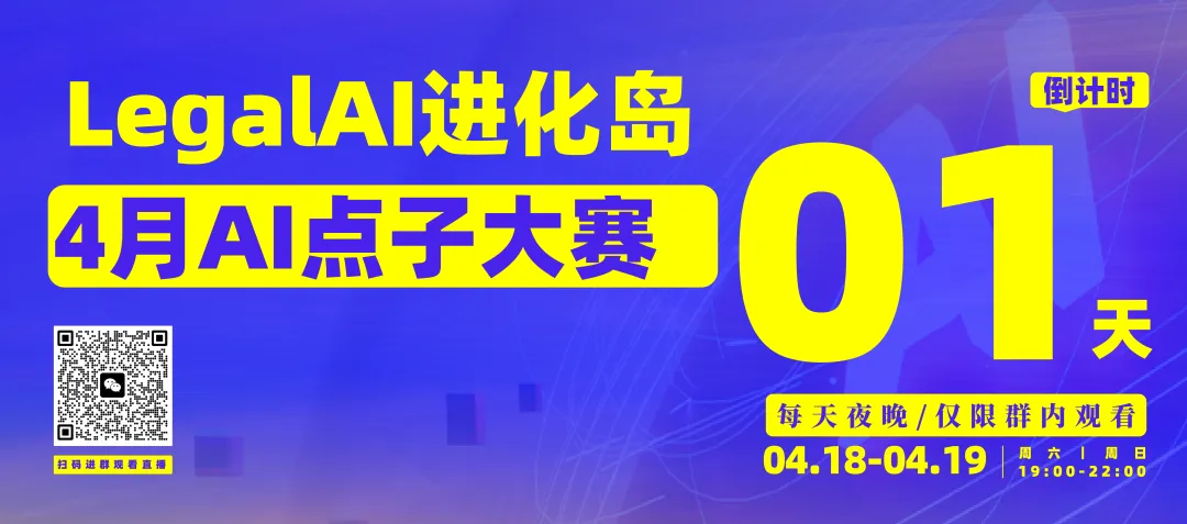 4.18-4.19,LegalAI进化岛的4月AI点子大赛千万不要错过啦!想看看那些用AI拿到结果的律师,都是怎么用AI的!