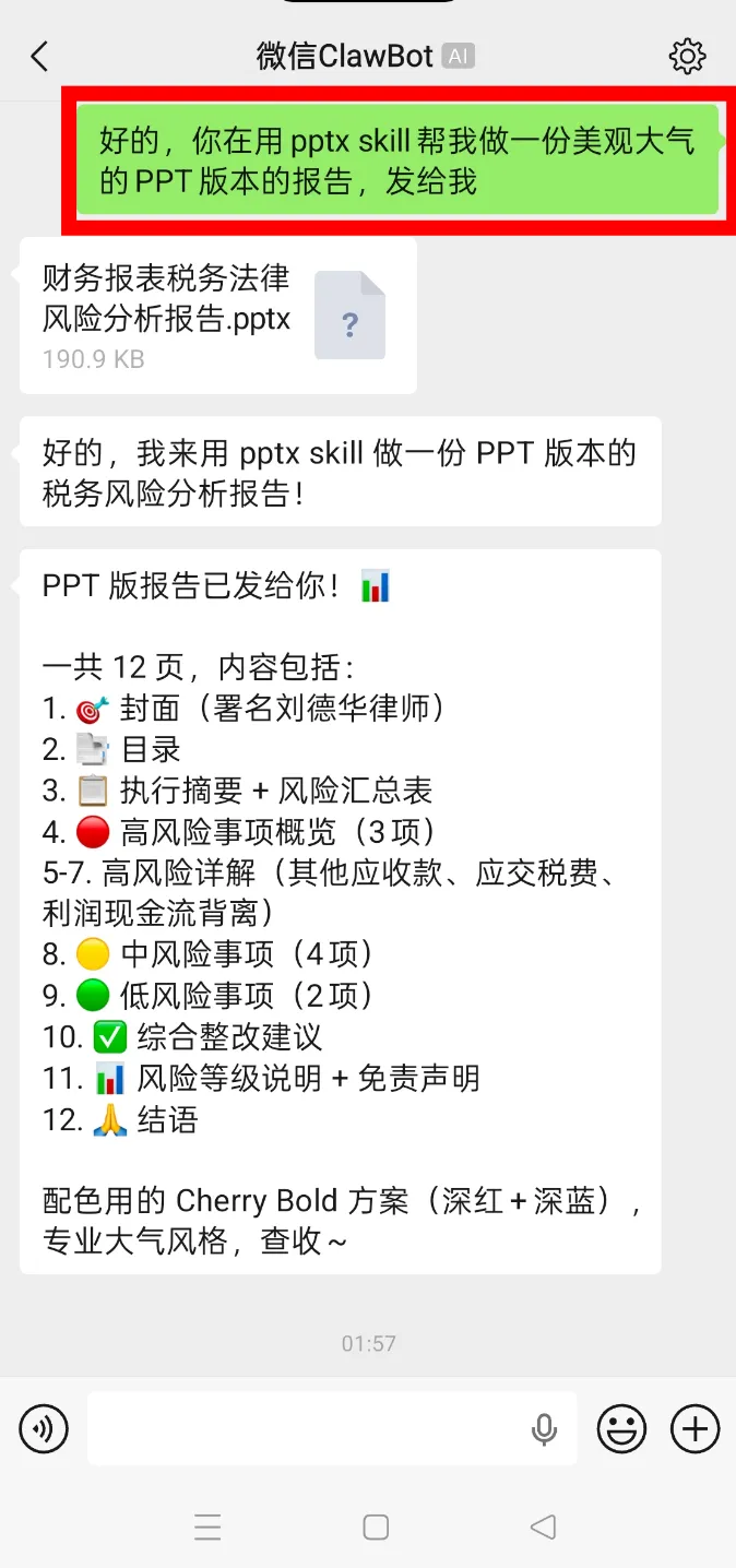 很简单,你只需要把财报发给他,让他用自带的一些Word或者PPT的skill去生成这种漂亮的,美观的报告就ok了。