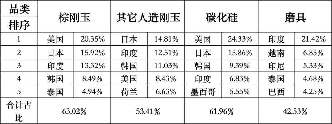 表四磨料磨具出口总量排名前五国家或经济体