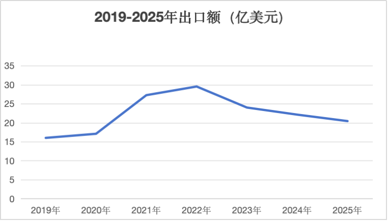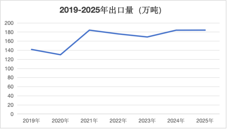 图2 2019-2025年产品出口量及出口价格变化图: