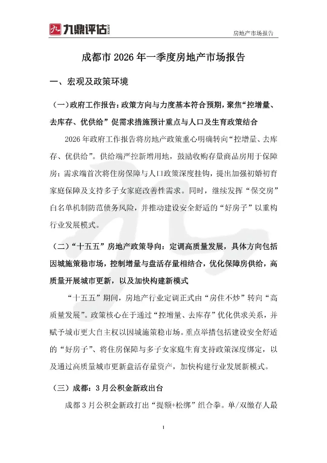 |成都九鼎|成都市2026年一季度房地产市场报告