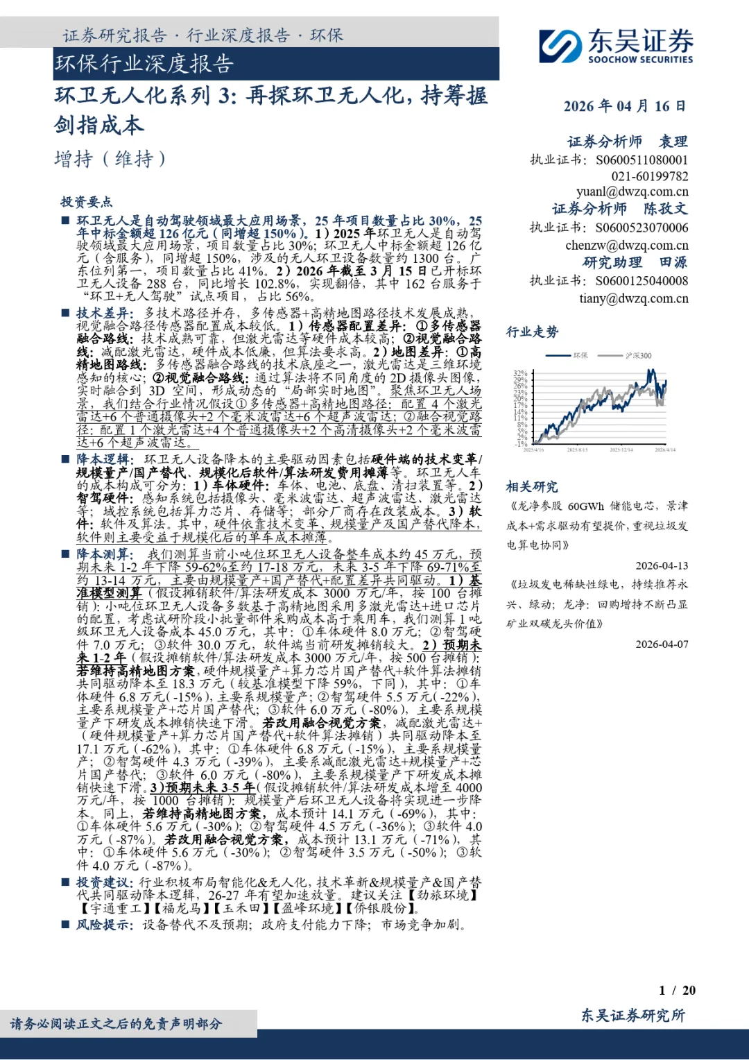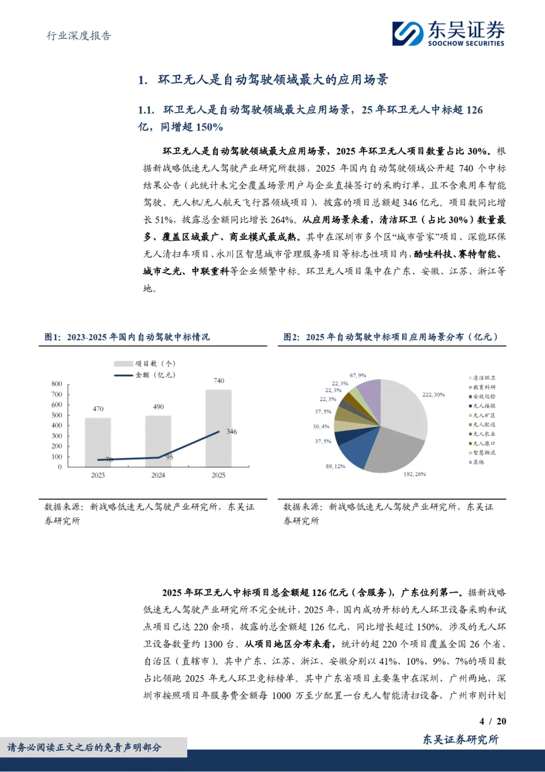 环卫无人化已成为自动驾驶领域最大应用场景,2025 年市场爆发式增长,2026 年延续高增态势,技术路线分化清晰,降本逻辑明确,行业 2026-2027 年有望进入规模化放量期。
