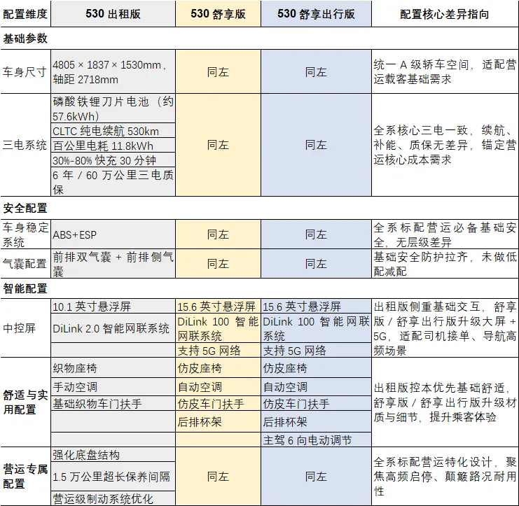 ·中立观察:未推出更低续航版本,一定程度上限制了对 “短途高频出租” 场景的极致适配,也反映出品牌对核心续航标准的统一规划。