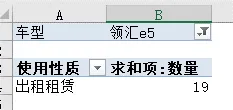 1.用途维度:100%营运,定位零偏差所有19台交付车辆的使用性质均为“出租租赁”,无私人非营运用户。这一数据直接验证了领汇e5的产品定位它并非“家用车兼做营运”,而是完全为B端营运场景打造的特化车型。