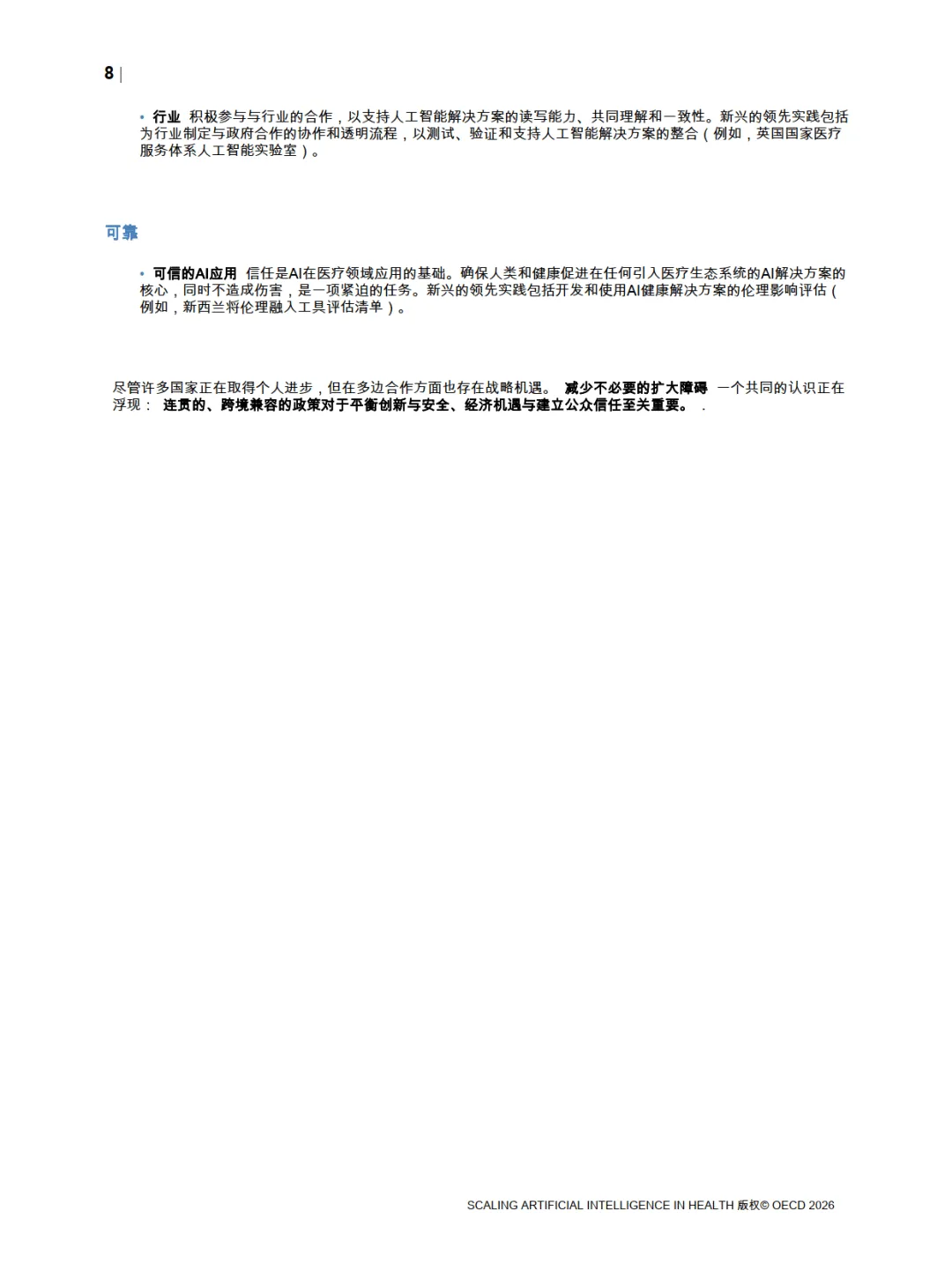 ,系统分析全球应用现状、核心挑战、政策框架与行动方向,旨在推动各国在安全、公平、可信前提下加速医疗 AI 落地。