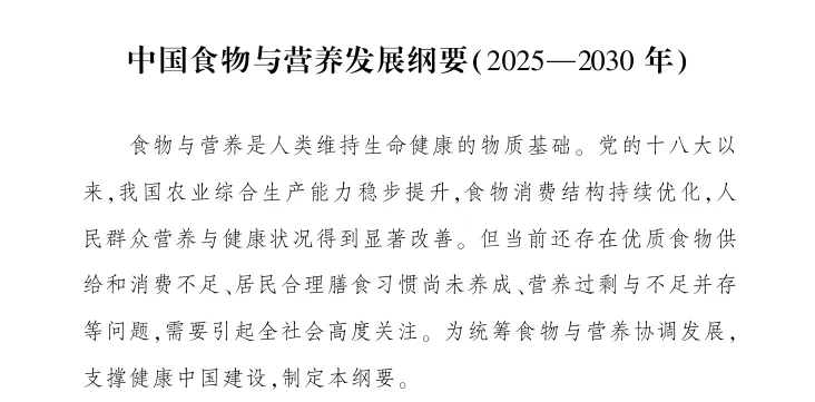 图:《中国食物与营养发展纲要(2025—2030年) 》