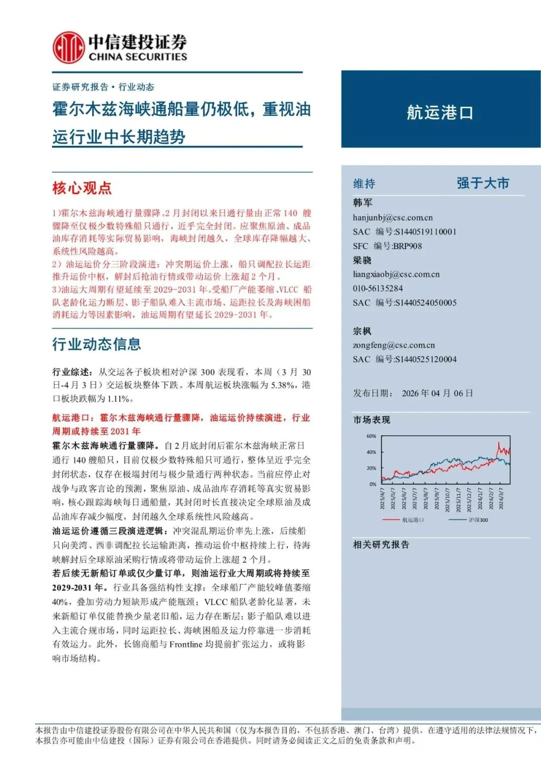 回复暗号:航运港口行业:霍尔木兹海峡通船量仍极低,重视油运行业中长期趋势-260406-中信建投-28页