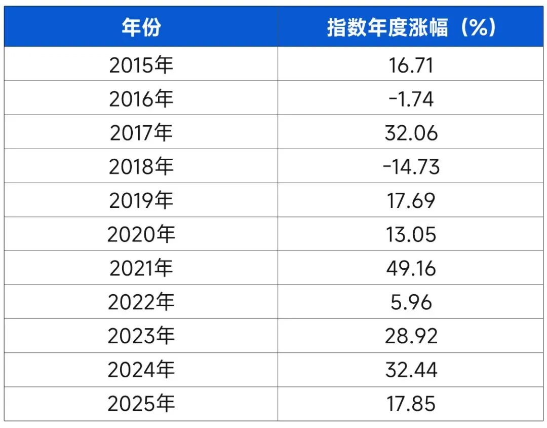 (数据来源:Wind,统计区间2015.01.01-2025.12.31;指数过往业绩不代表其未来表现,不等于产品实际收益,基金有风险,投资需谨慎。)