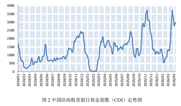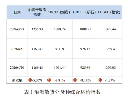 上海国际航运研究中心航运发展研究所发布《中国沿海干散货运输市场双周报(2026.03.28-2026.04.10)》。